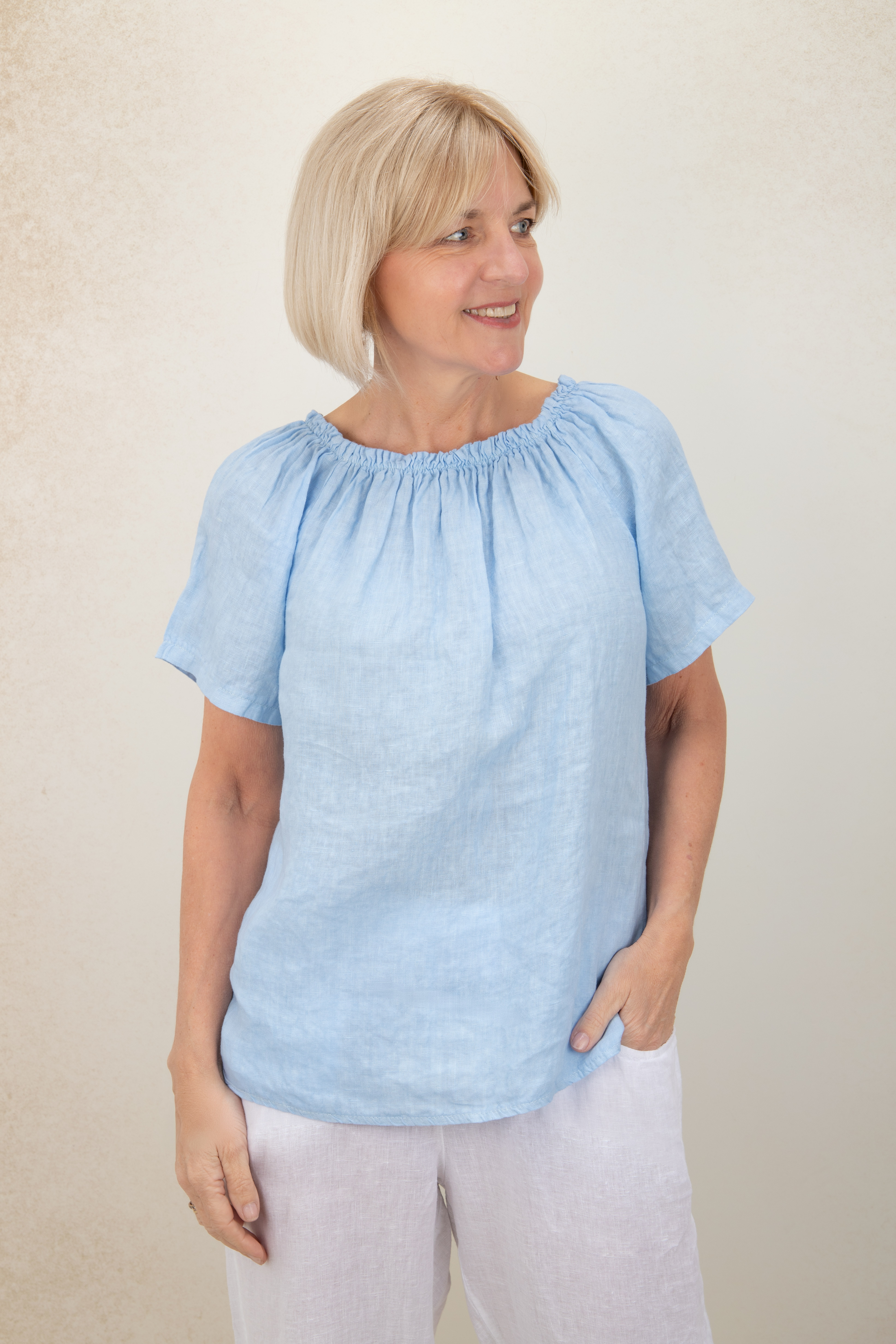 New for 2026, the Ellie top has a relaxed, easy fit with a soft, feminine silhouette. Designed with a versatile elasticated neckline, it can be worn off the shoulder or as a classic boat neck for two effortless looks in one. Finished with delicate fluted sleeves for added detail, it offers both comfort and style. Made from 100% breathable European linen, it will typically fit UK sizes 8–14 and is available in two sizes. Perfect for warm weather, holidays, or layering, pair with linen trousers or denim for an easy everyday look.