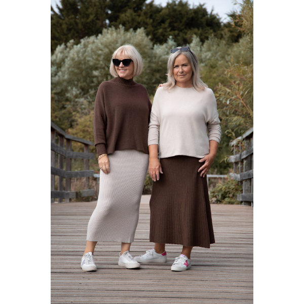 Skirts are still very much in play, and layering is key. The Henriette Steffensen Chokolate Long Fleece Skirt, in a deep brown fleece, brings warmth, texture, and length. Pair it with a matching jumper for an effortless co-ord, or style with a burgundy knit for all the autumn feels. It’s a luxurious yet wearable staple for transitional days.