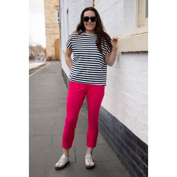 Robell trousers are known for their pull-on designs, stretch fabrics, and flattering fits. Choose from cropped, ankle-grazer, or full-length options in classic colours and seasonal updates.