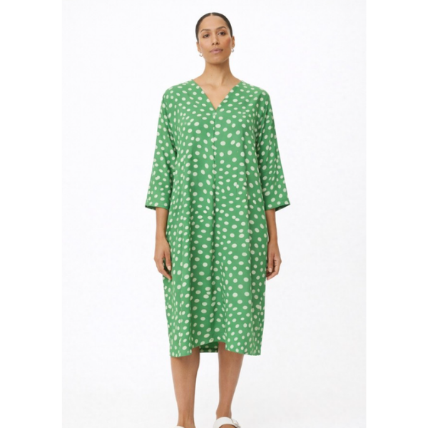 Fresh Masai clothing has just landed, including a gorgeous green and navy polka dot print for the new season.
