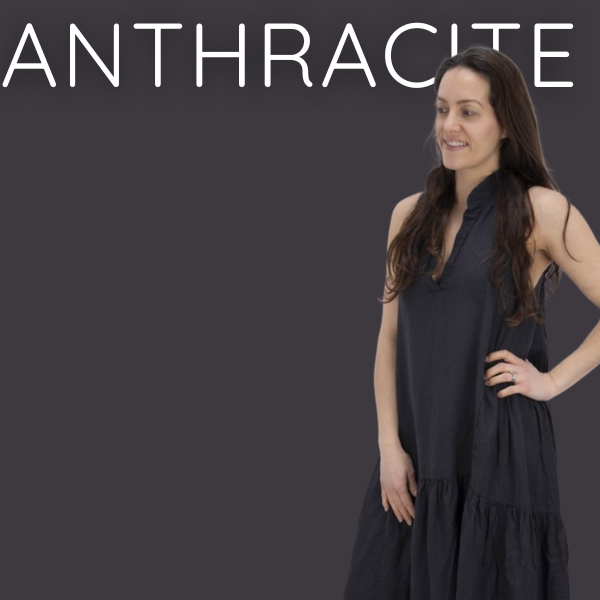 A deep, sophisticated grey, antracite offers a polished alternative to black. It grounds lighter spring tones while maintaining a soft, wearable aesthetic — perfect for layering lightweight knits and jersey silhouettes. Shop the Pollo L Wide Crop Leg Trouser and the Limite Plain Tiered Dress in antracite.