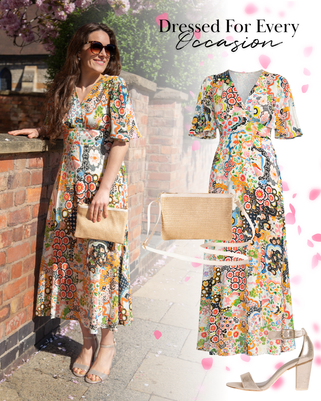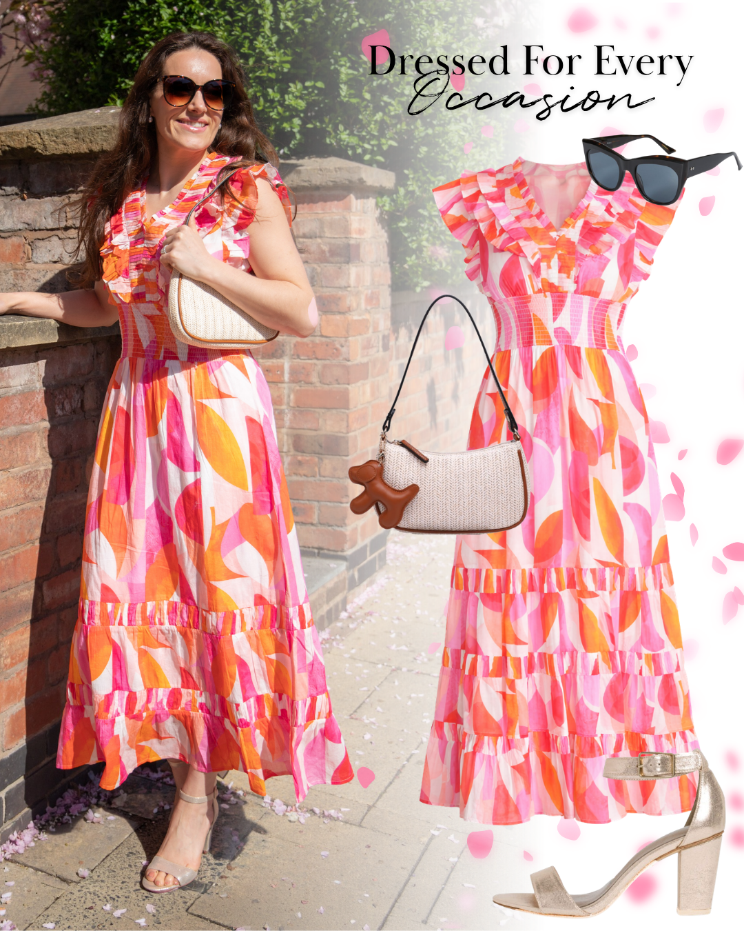 For garden parties and daytime celebrations, a lighter, more playful approach works beautifully. A tiered maxi dress in bright seasonal hues brings movement and energy to your look, while still feeling relaxed and wearable.