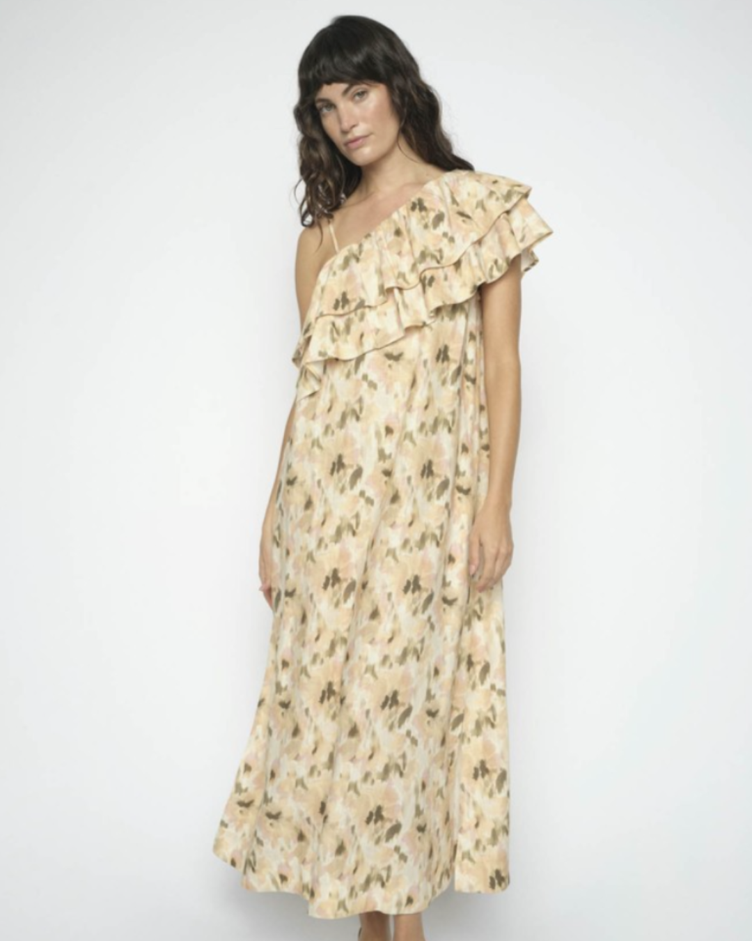 The MMSoma Flower Field Dress in burnt olive introduces a complementary earthy hue. With its fluid silhouette and feminine feel, it moves easily between casual and more refined settings. This piece captures the balance MOS MOSH is known for—effortless yet considered, relaxed yet polished.