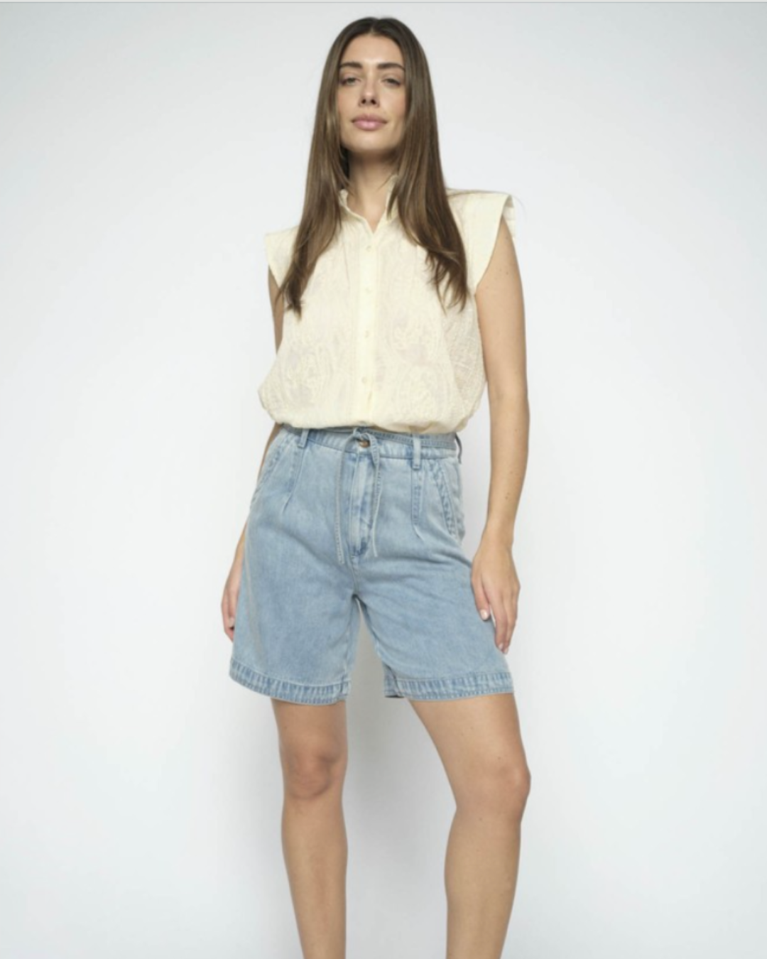 For a more laid-back option, the MMLeli Denim Shorts provide a modern take on a summer staple. Their relaxed fit adds a casual edge to the collection, creating the perfect contrast against softer, more refined pieces. Styled with the cowhide top, they create an easy, everyday outfit that still feels put together.