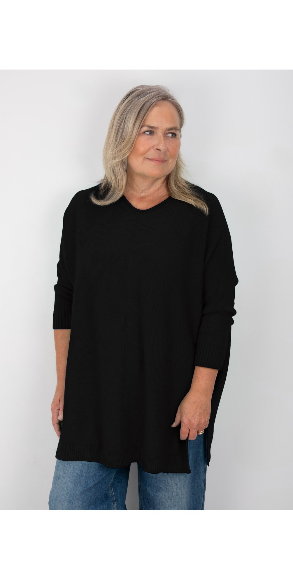Amazing Woman Cassi X Black Round Neck Front Seam Knit