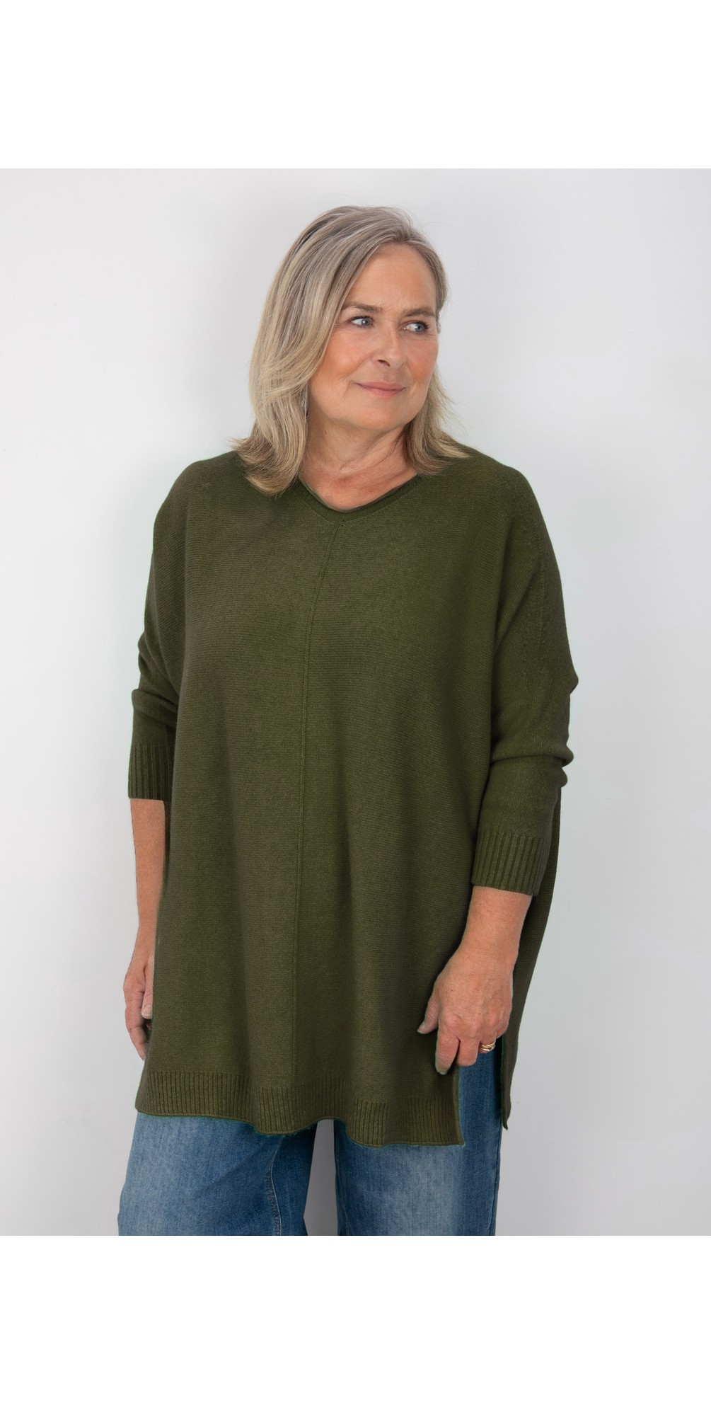 Amazing Woman Cassi X Musch Olive Round Neck Front Seam Knit