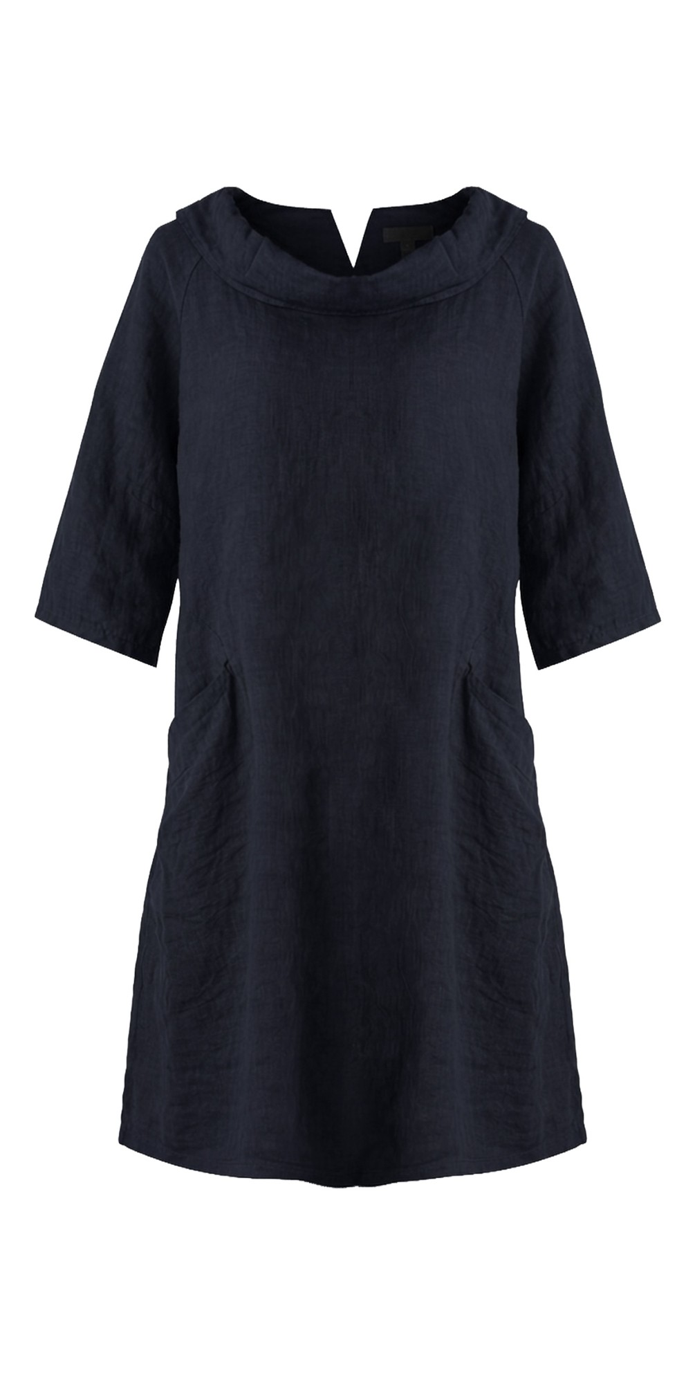 Crafted from 100% European linen, this dress offers a naturally lightweight and breathable feel, ideal for staying cool on warmer days. The soft cowl neckline adds a touch of fluid femininity, while the button-down back introduces subtle interest and a modern finish. Designed with 3/4 length sleeves and a flattering knee-length cut, it creates a versatile silhouette that’s easy to wear across seasons.