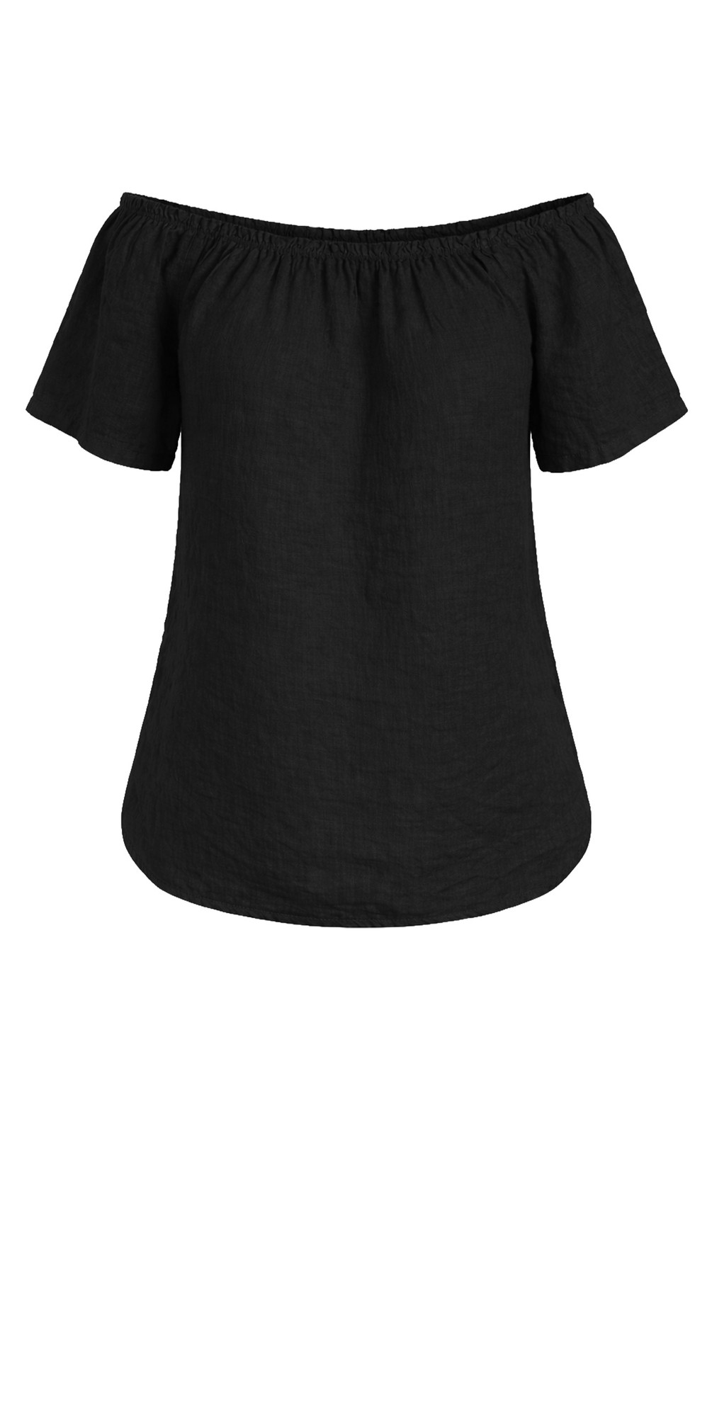 The softly elasticated neckline allows you to wear it off the shoulder for a relaxed, feminine look or styled as a classic boat neck for effortless elegance. Loose short sleeves with a subtle fluted shape add movement and softness, while the gently gathered neckline creates a flattering, easy silhouette.