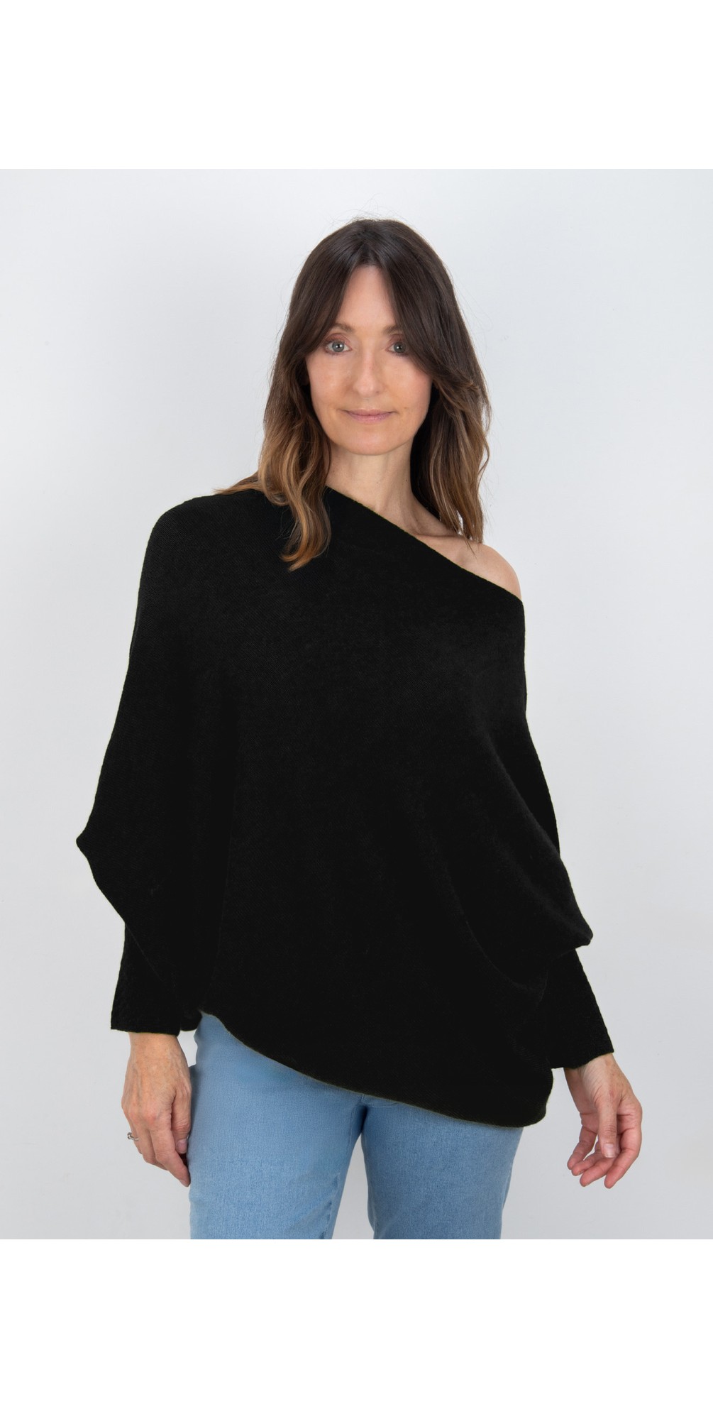 Amazing Woman Emilie Black Asymmetric Draped Jumper