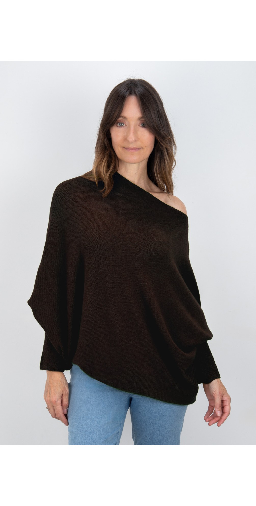 Amazing Woman Emilie Dark Chocolate Asymmetric Draped Jumper