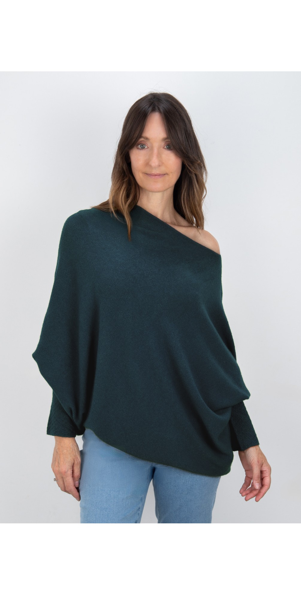 Flattering and feminine, the Emilie Asymmetric Draped Jumper by Amazing Woman has a unique cut that provides multiple looks in an instant. The asymmetric neckline can be worn off one shoulder or as a cowl neck, and the hemline drapes longer on one side, which can be styled longer or shorter depending on the desired look. Another feminine touch is the square-tile stitch sleeves that fit neatly from the elbow to accentuate the draped silhouette.
