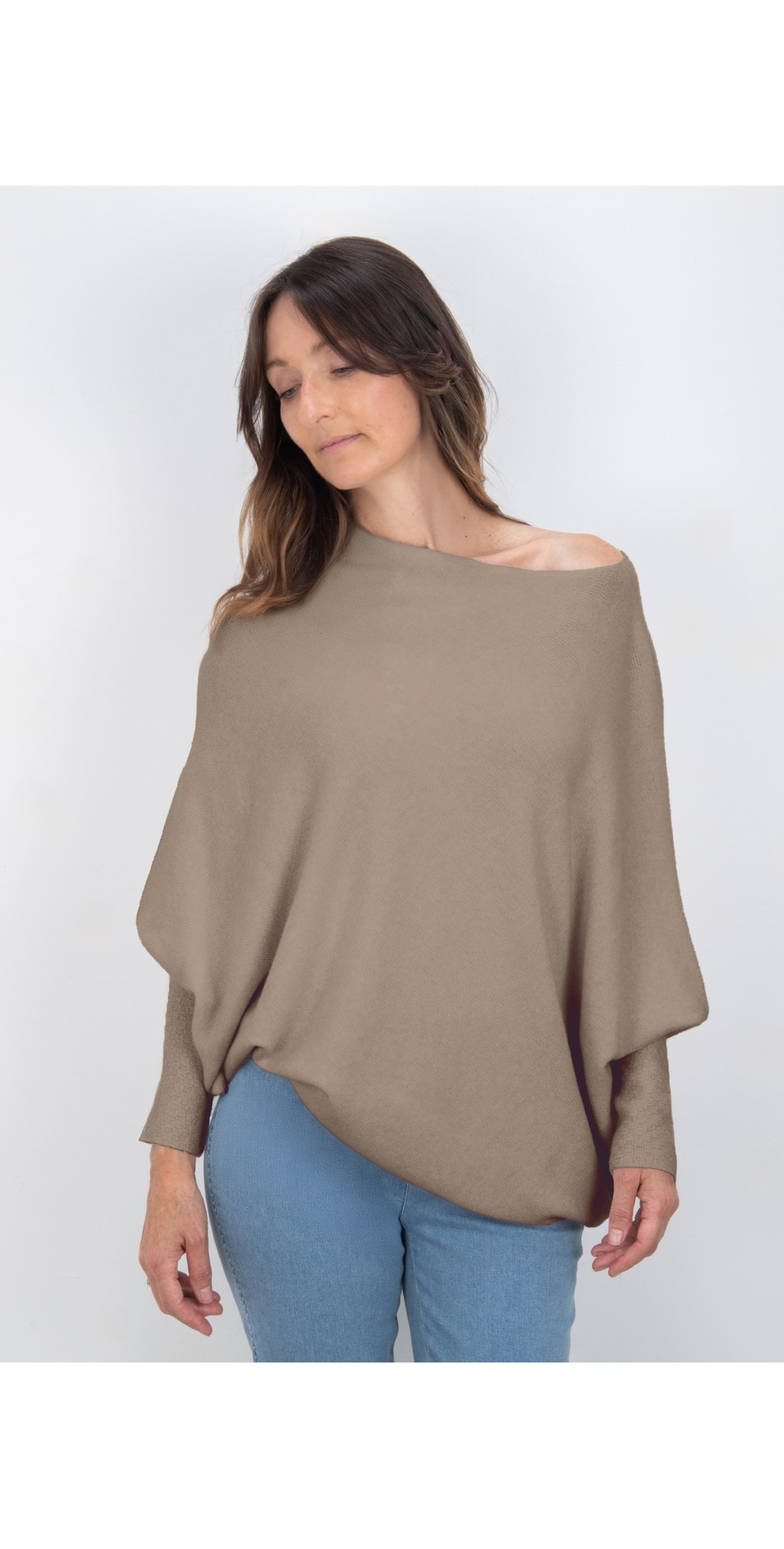 Flattering and feminine, the Emilie Asymmetric Draped Jumper in Smoke by Amazing Woman has a unique cut with the intention of providing multiple looks with one jumper. The asymmetric neckline can be worn off one shoulder or as a cowl neck, and the hemline drapes longer on one side, which can be styled longer or shorter depending on the desired look. Another feminine touch the knit has is the square-tile stitch sleeves that fit neatly from the elbow, to accentuate the draped silhouette.