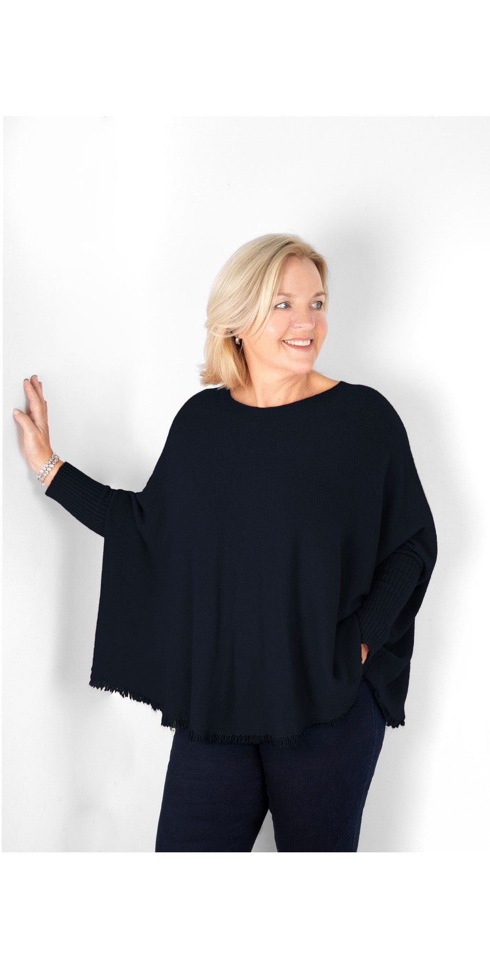 Amazing Woman Fringe Dark Navy Round Neck Knit Jumper