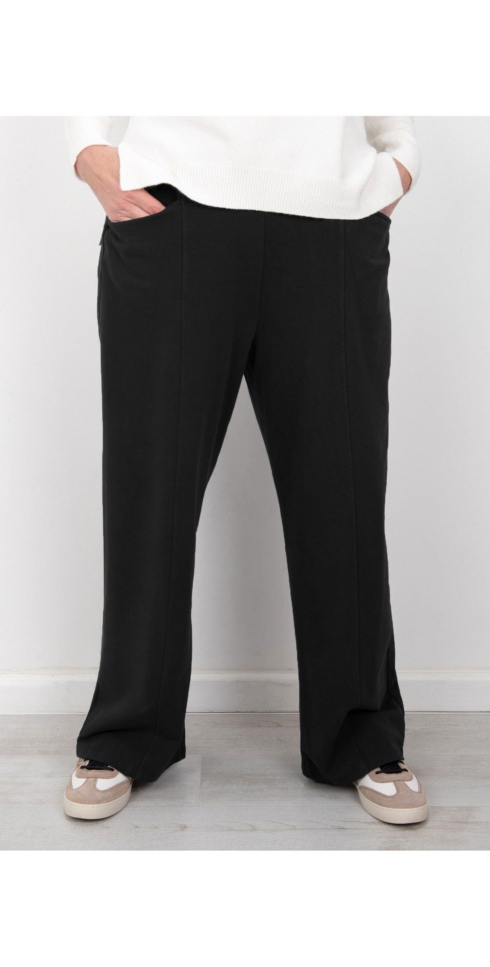 Upgrade your everyday wardrobe with the Gina Jersey Bubble Trousers in Long Length from Amazing Woman. Part of the best-selling Jersey Collection, these trousers combine comfort, style, and practicality for women who want easy dressing without compromising on elegance. Crafted with a stretch jersey fabric, they feature a smooth elasticated waistband, flattering flat front, and handy side pockets. The signature bubble-leg silhouette is now designed to be longer, offering extra coverage and a relaxed yet contemporary fit.