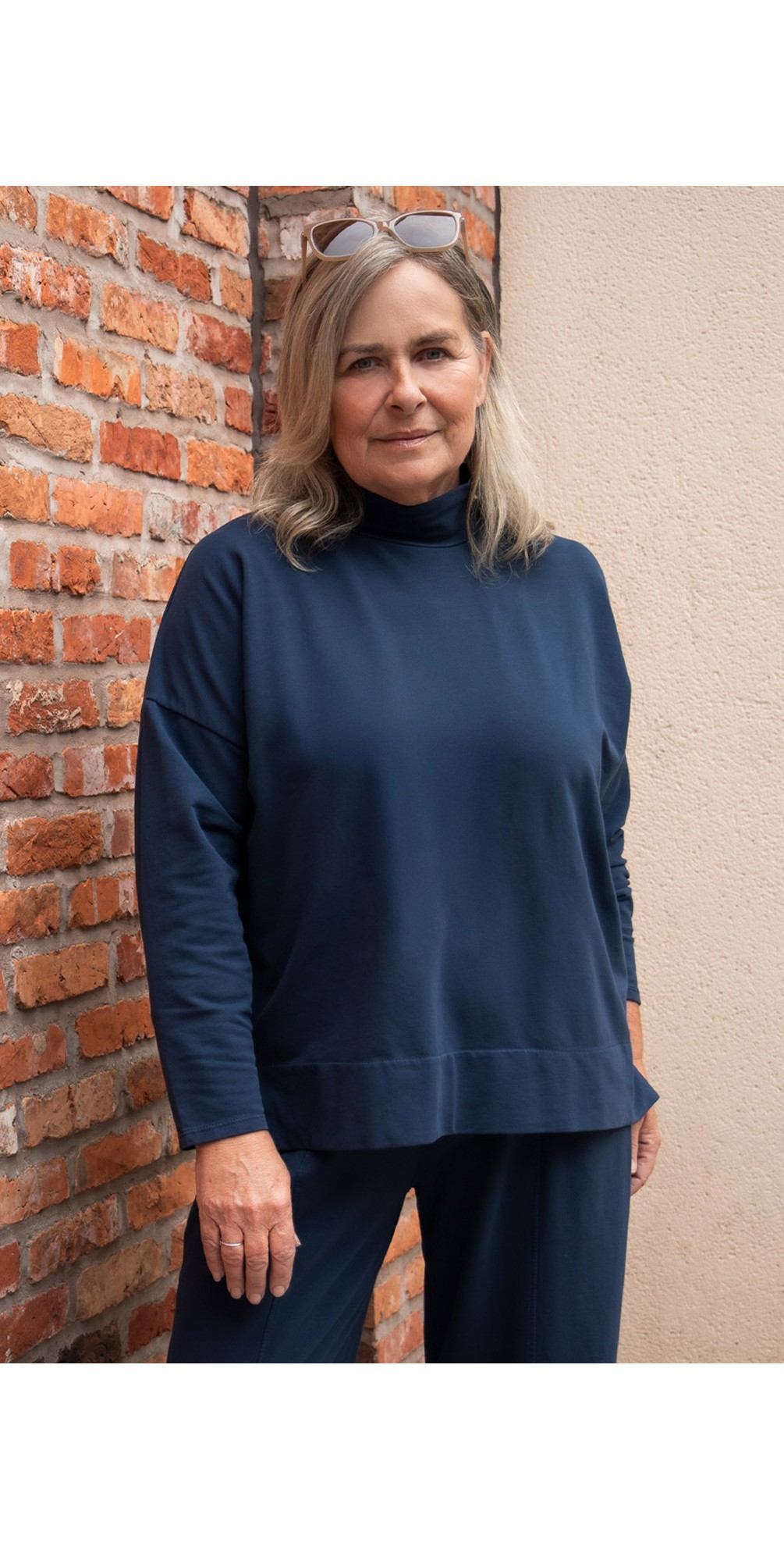 Amazing Woman Ginny Dark Navy Cowl Neck Jersey Top