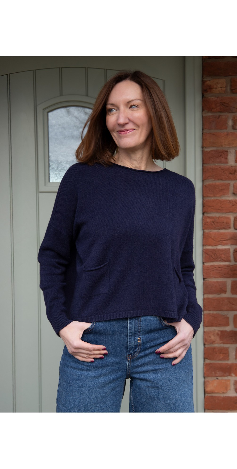 Amazing Woman Jodie Navy Front Pocket Supersoft Knit Jumper