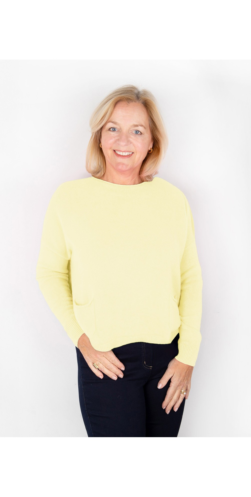 Amazing Woman Jodie Pale Lemon Front Pocket Supersoft Knit Jumper
