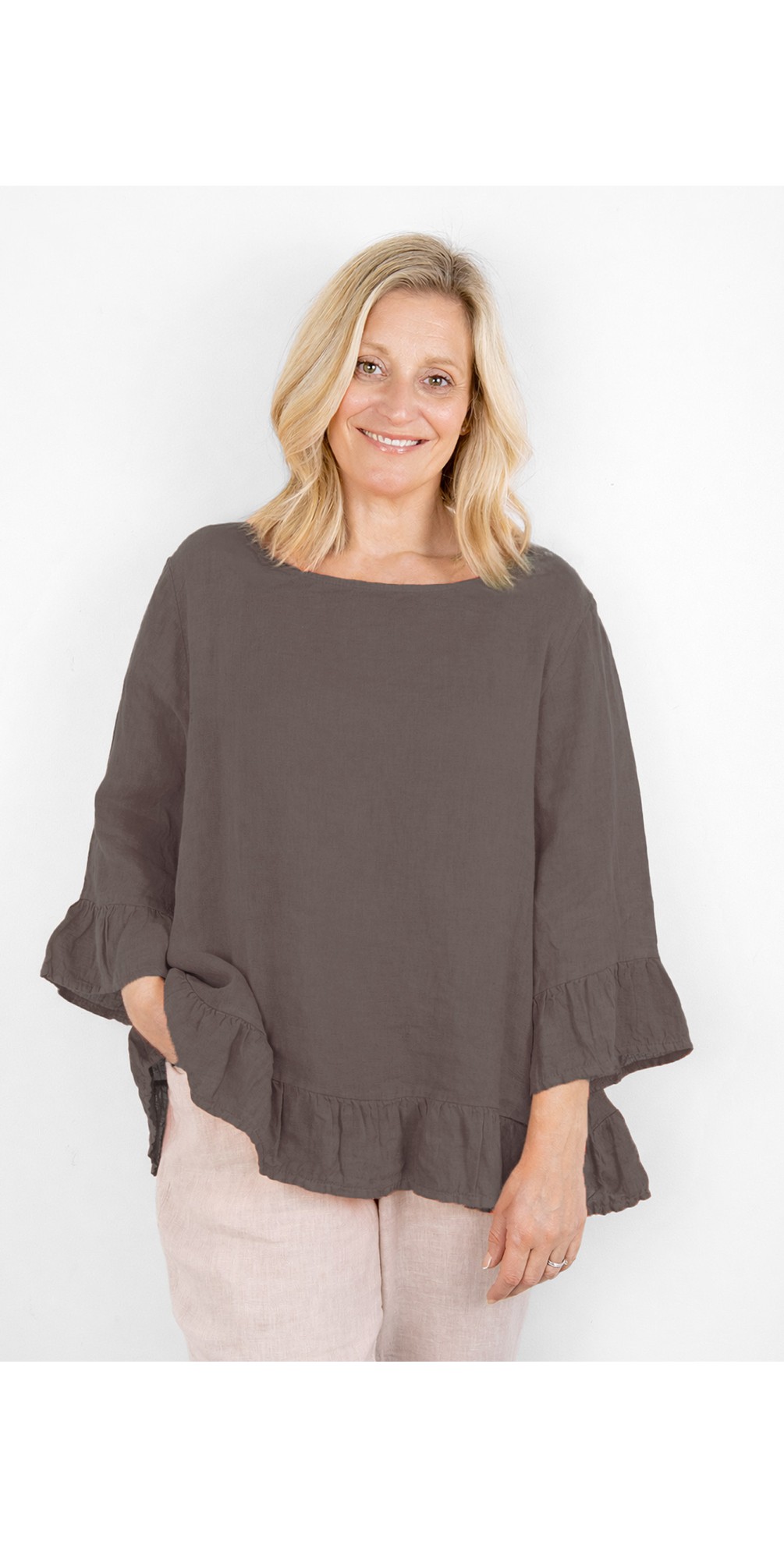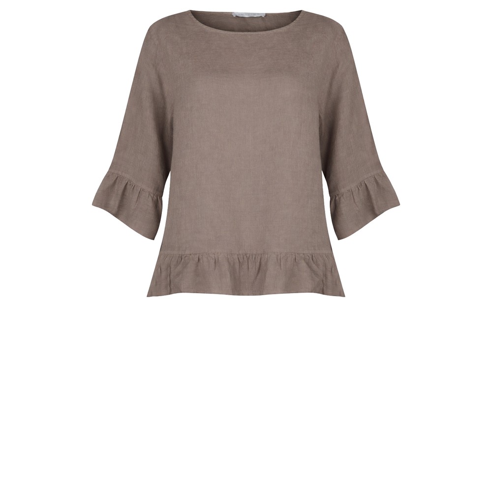 Amazing Woman Julia Dark Mud Linen Frill Top