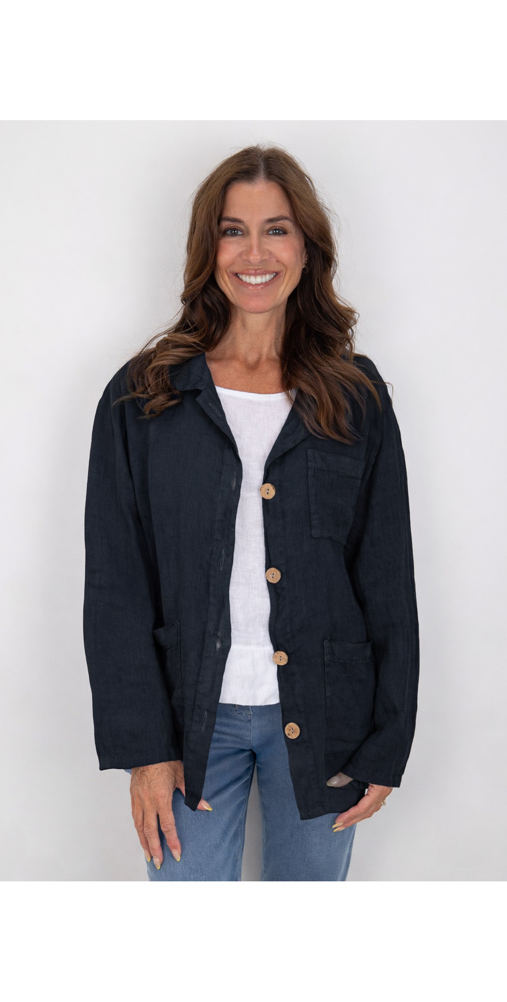 Amazing Woman's new Keely Chore Linen Jacket is the perfect casual piece for in-between seasons. This Linen Jacket is designed to offer a relaxed fit, making it ideal for easy layering. Amazing's Keely Jacket features a timeless collared neckline and a button-through front, along with three patch pockets creating an authentic, utility-inspired look.