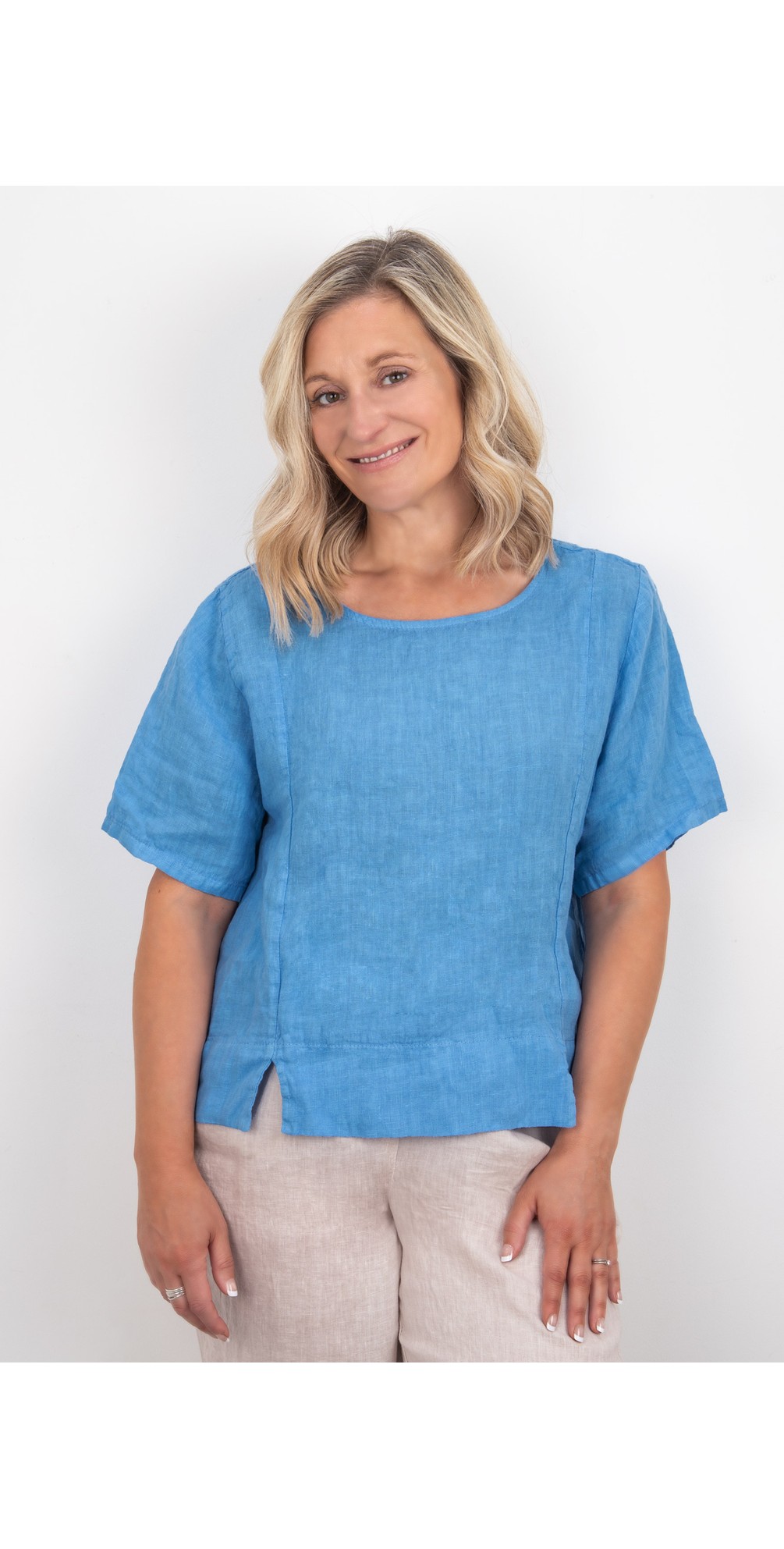 Amazing Woman Lucie Blue Short Sleeved Linen Top