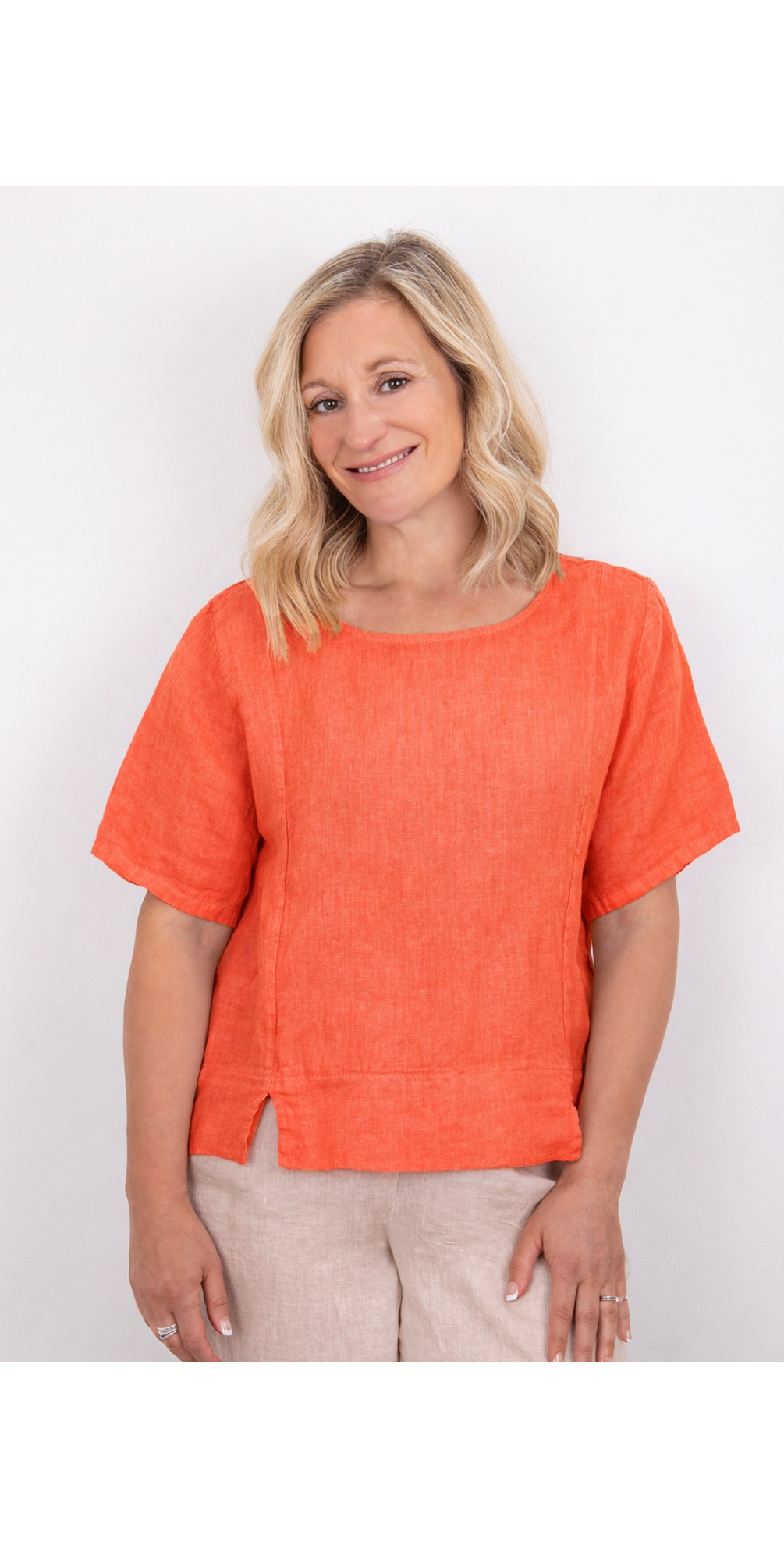 Amazing Woman Lucie Papaya Short Sleeved Linen Top