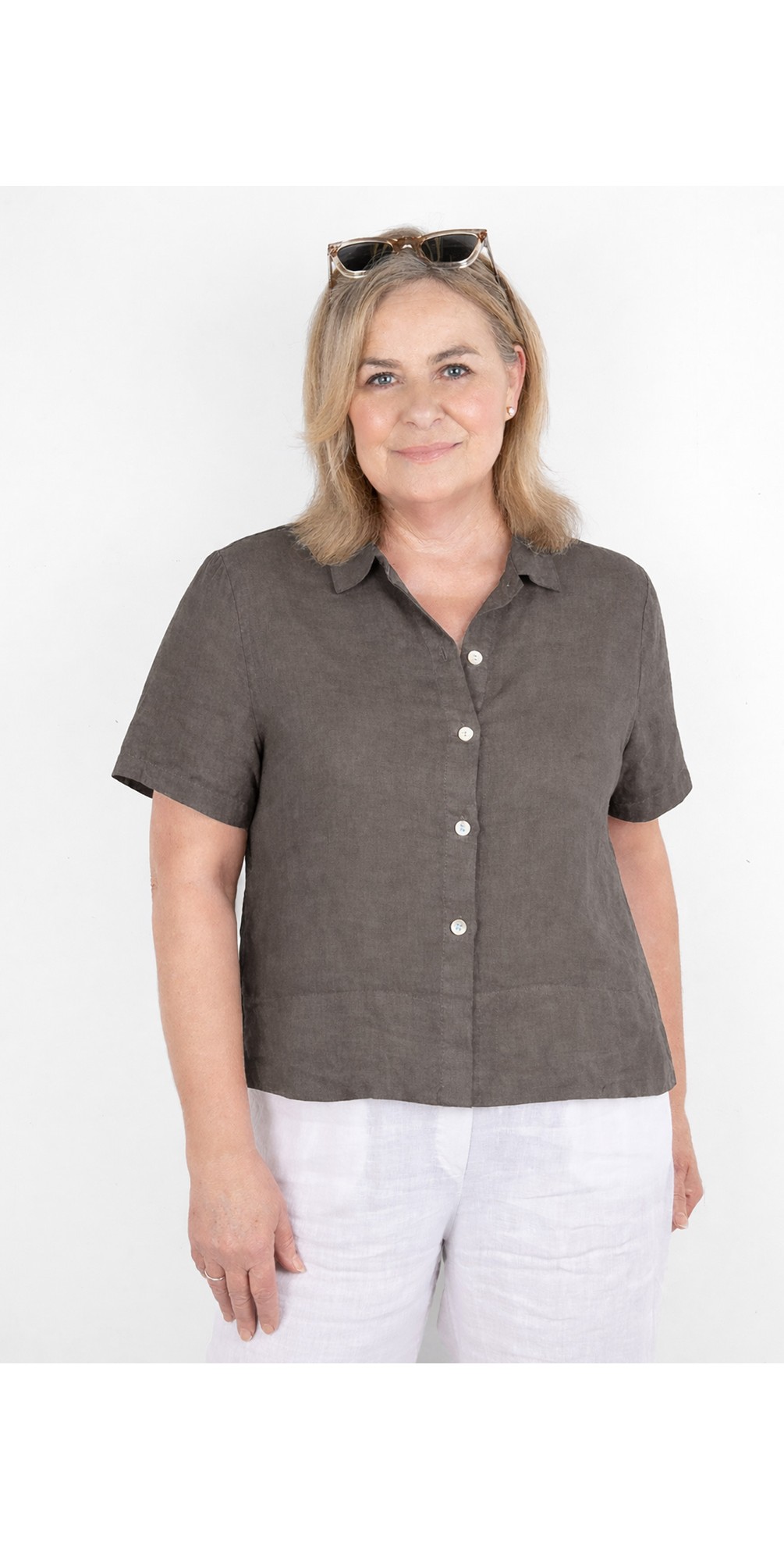 Amazing Woman Marilyn Dark Mud Boxy Linen Shirt