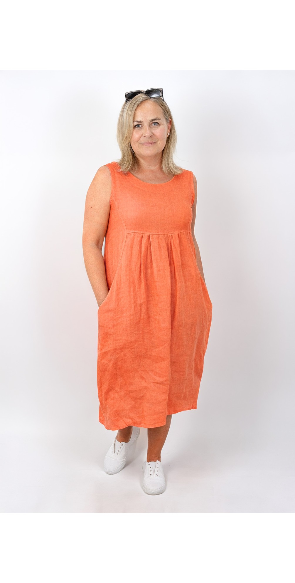 Amazing Woman Nerida Papaya Scoop Neck Linen Dress