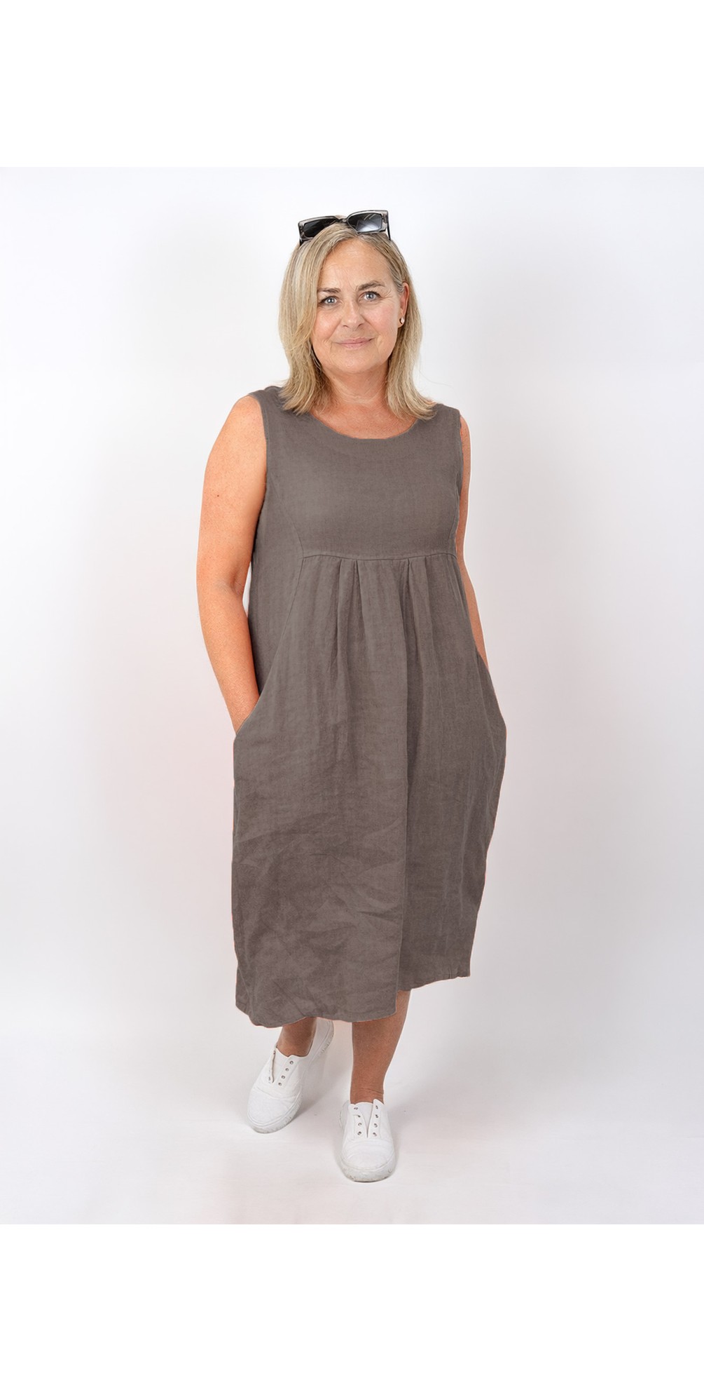Amazing Woman's Nerida Scoop Neck Linen Dress is a true summer staple with its relaxed shape and thick straps, perfect for warm days out. Feel instantly put together and ready for the day in the Nerida dress, complete with two practical front pockets to place your hands! Layer with a lightweight jacket on cooler days.