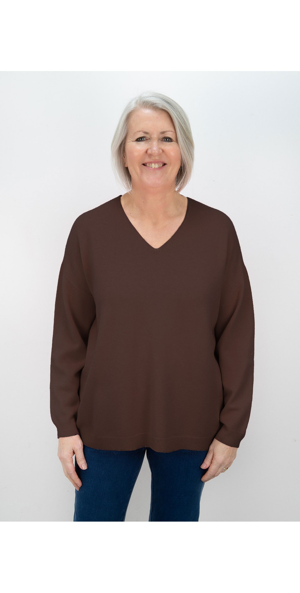 Amazing Woman Penny Espresso Super Soft Knit V-Neck Jumper