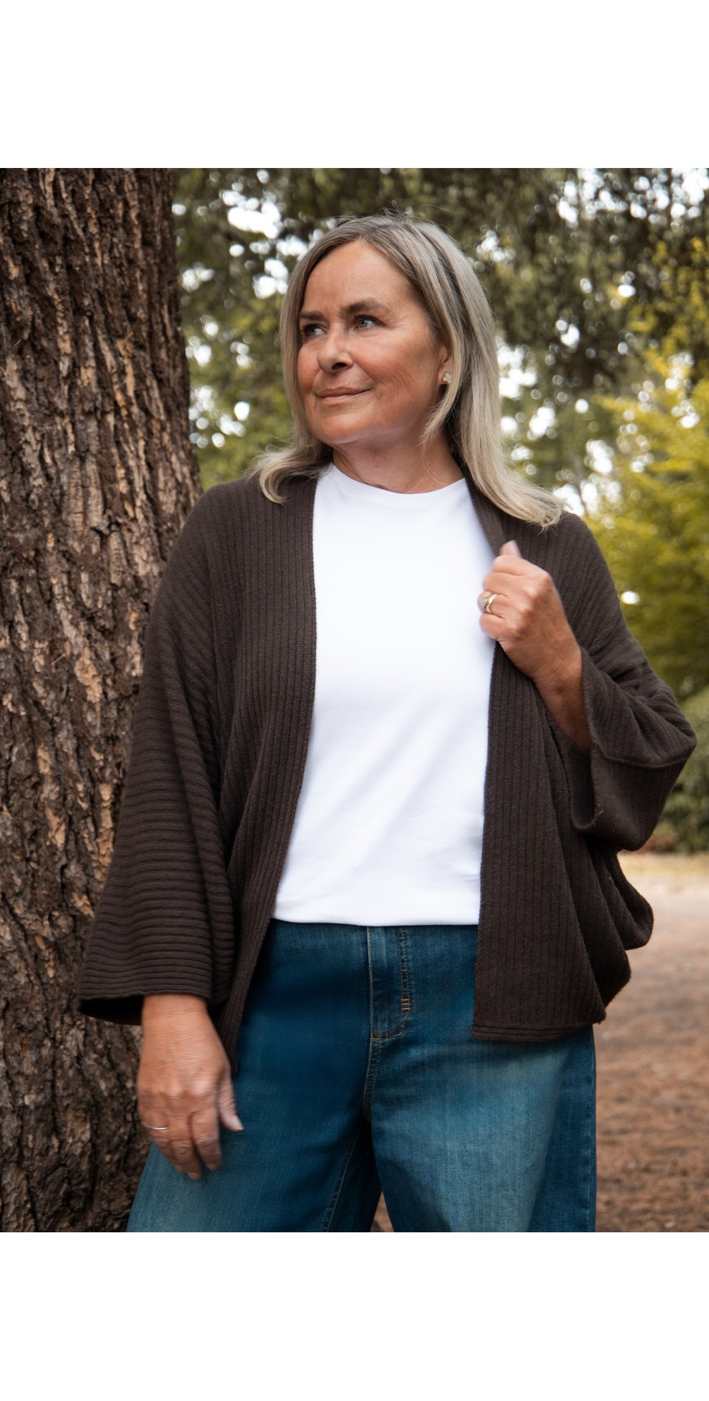 Amazing Woman Pheobie Dark Chocolate Rib Throw Over Cardigan