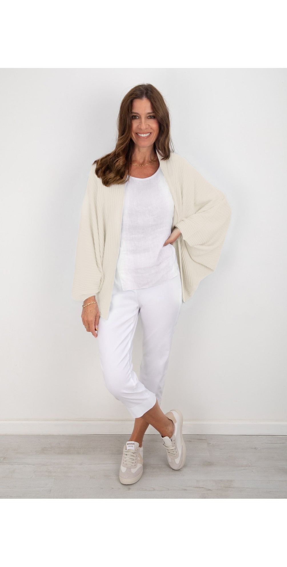 Amazing Woman Pheobie Ivory Rib Throw Over Cardigan