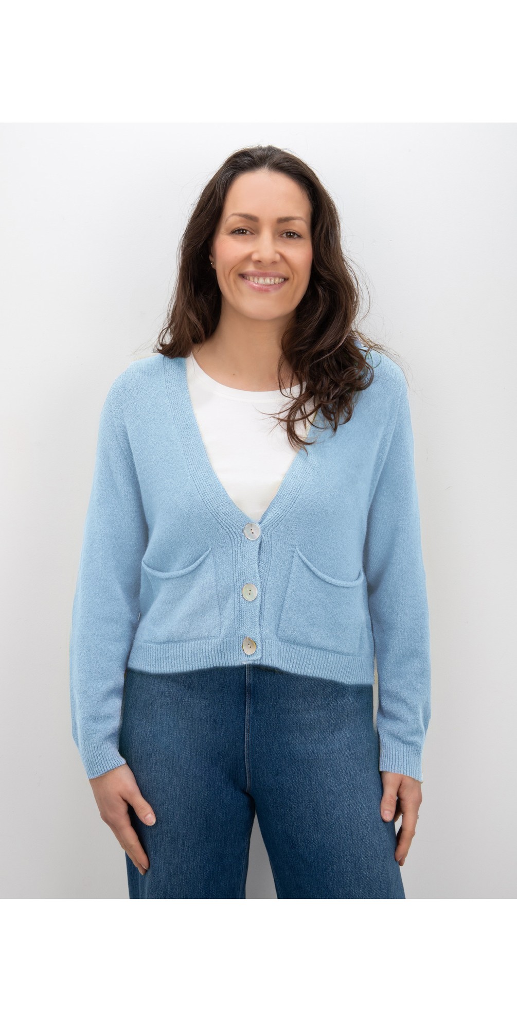 Featuring a flattering V-neckline, full-length raglan sleeves, and 3 button fastening, this cardigan is finished with practical front pockets for everyday comfort. The cropped length makes it perfect for layering over dresses or pairing with high-waisted jeans, trousers, or skirts.