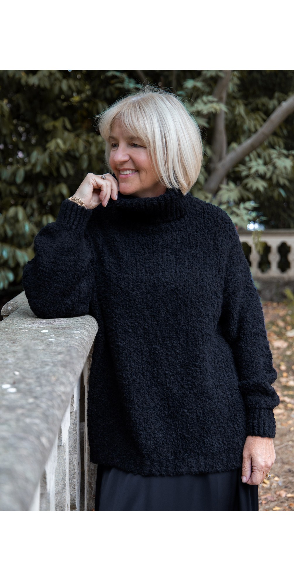 Amazing Woman Vinny Navy Boucle Wool Blend Polo Neck Knit