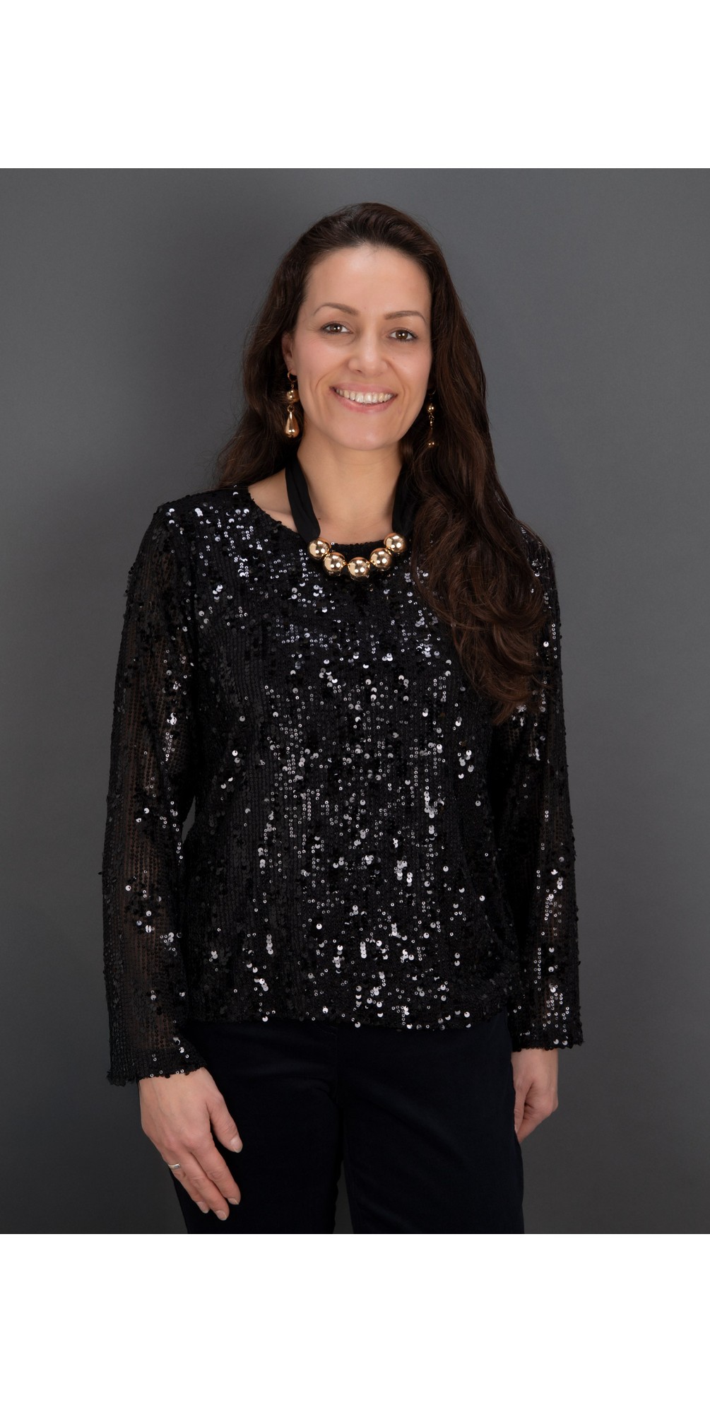 Make an elegant entrance in the Arka Sophia Sequin Blouse, shimmering in a rich chocolate tone for refined sparkle with a wearable silhouette. This easy-fit one-size blouse from the renowned brand Arka is designed to fit UK sizes 10-14 with comfort and style in mind. Crafted with 95% polyester and 5% elastane, the blouse offers slight stretch and effortless drape. The all-over sequins reflect light beautifully, making it an ideal choice for evenings, festive occasions or simply adding a touch of glam to your wardrobe.