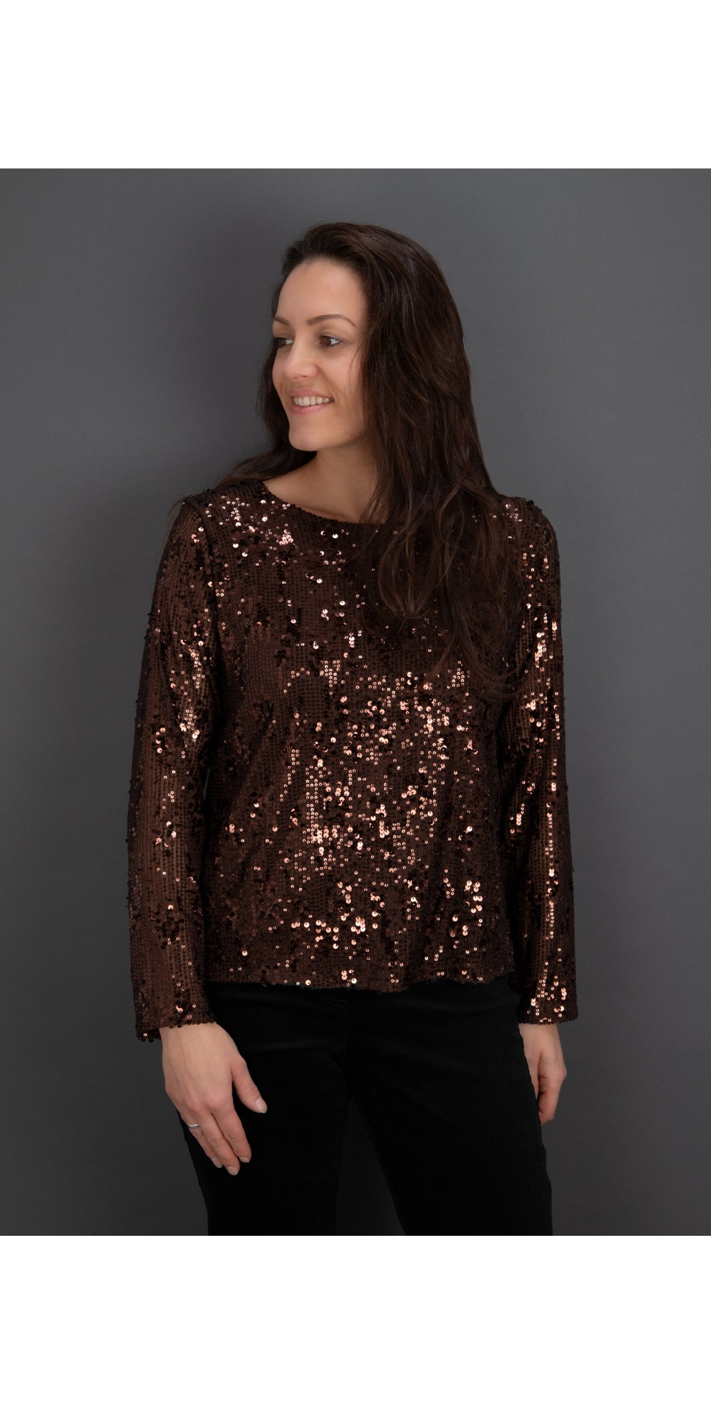 Make an elegant entrance in the Arka Sophia Sequin Blouse, shimmering in a rich chocolate tone for refined sparkle with a wearable silhouette. This easy-fit one-size blouse from the renowned brand Arka is designed to fit UK sizes 10-14 with comfort and style in mind. Crafted with 95% polyester and 5% elastane, the blouse offers slight stretch and effortless drape. The all-over sequins reflect light beautifully, making it an ideal choice for evenings, festive occasions or simply adding a touch of glam to your wardrobe.