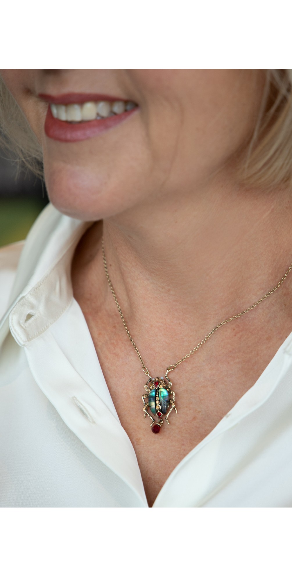 Bill Skinner Jewellery presents statement jewellery that's sure to turn heads—the Bejewelled Beetle Pendant. A true showstopper, this pendant features bespoke resin stones and hand-set crystals meticulously crafted to form the body of a beautiful beetle.