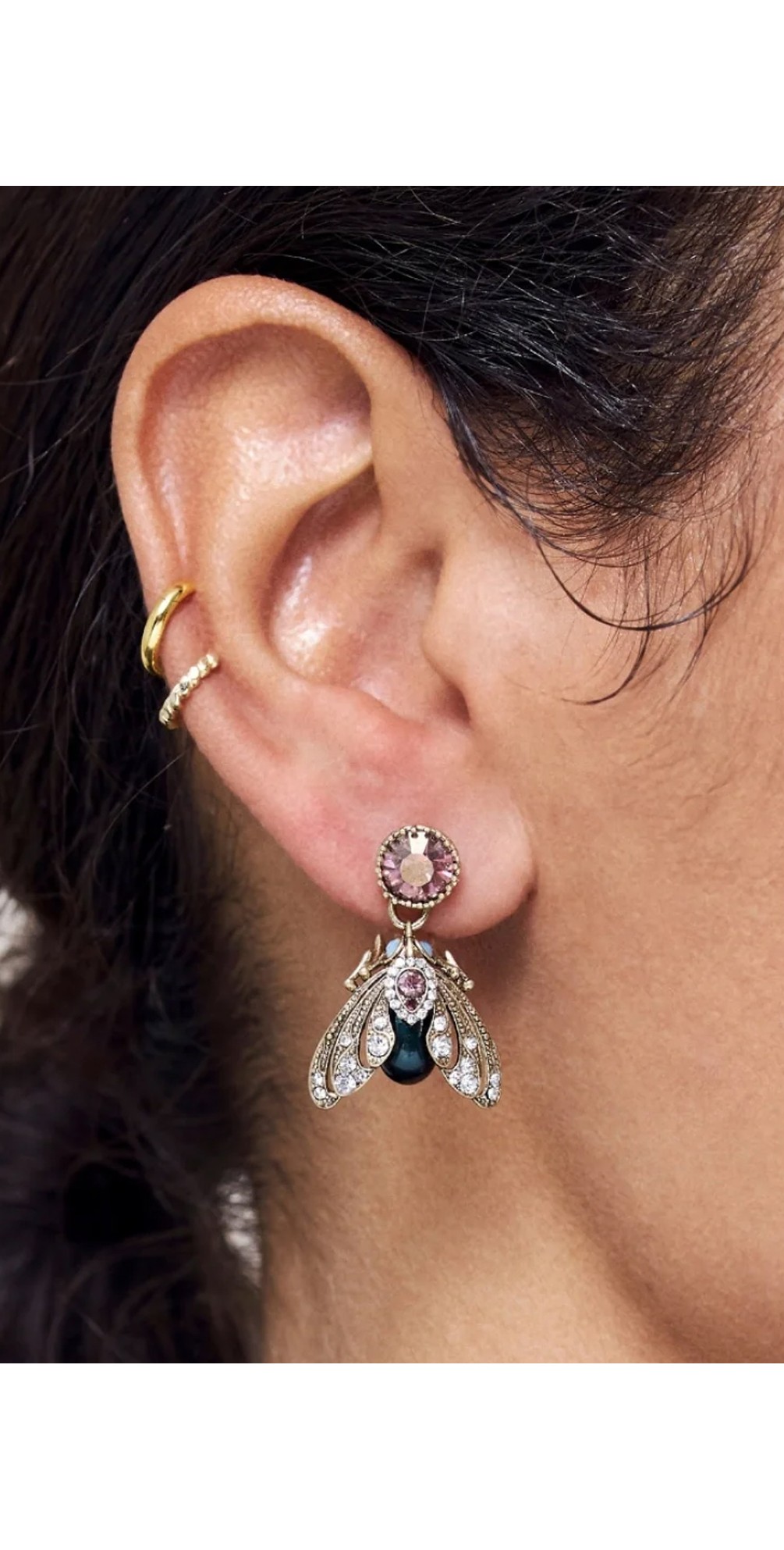 Add a touch of vintage glamour to your look with the Bill Skinner Bejewelled Moth Drop Earrings. Beautifully handcrafted in the UK, these stunning earrings feature a delicately detailed moth design adorned with hand-set crystals and a lustrous Tahitian pearl drop.