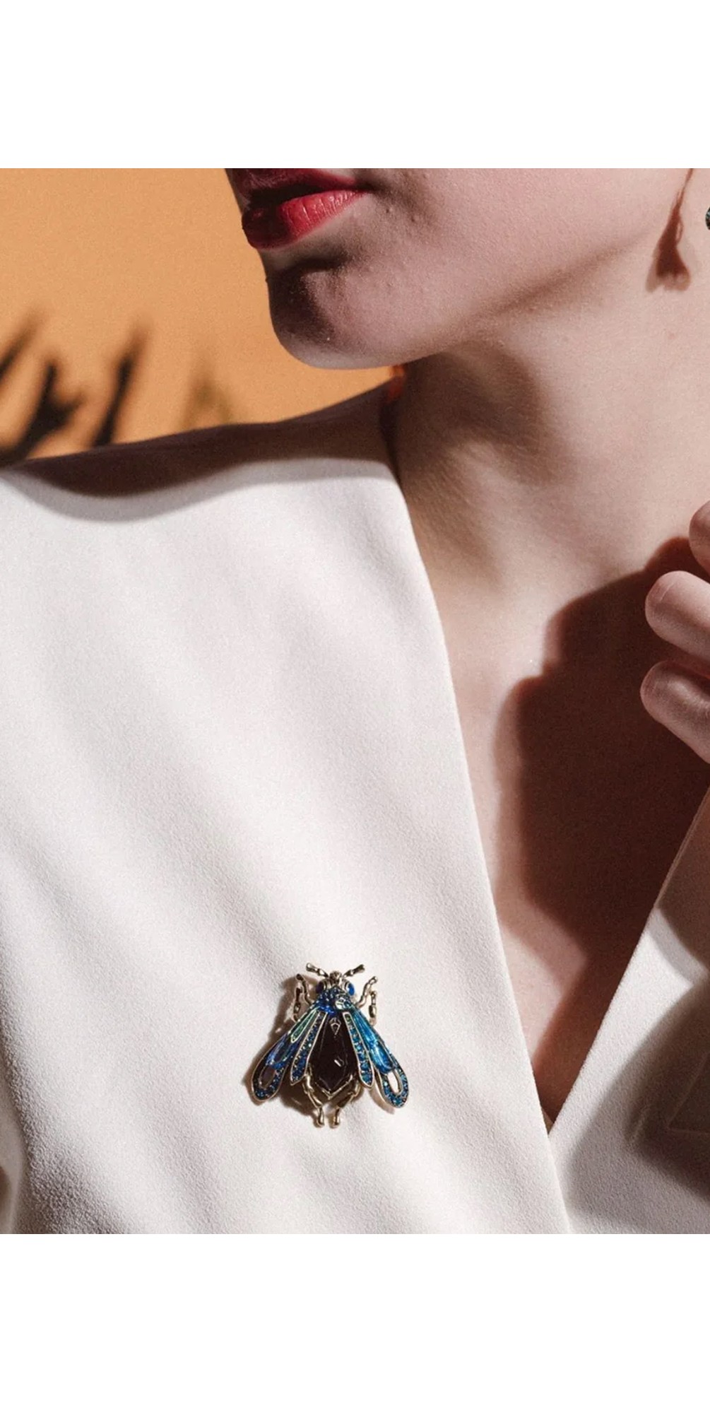 Introducing from Bill Skinner, the Vintage Moth Brooch. It features a moth with a bespoke resin stone body, adorned with AB crystals that capture and reflect light with captivating brilliance. The antique gold finish adds a touch of vintage charm, enhancing the brooch’s sophisticated allure.
