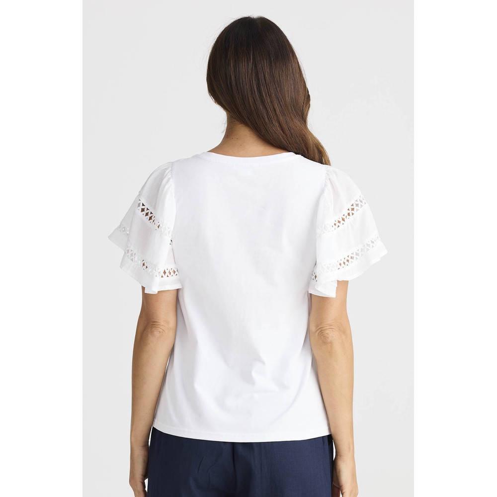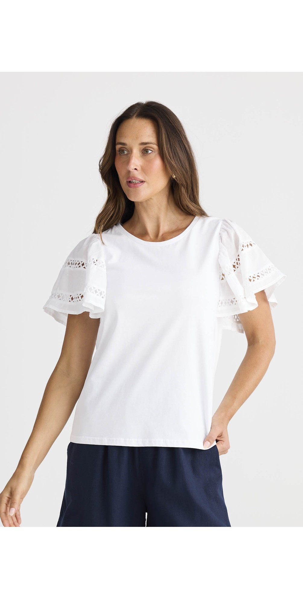 Brave + True Chloe White Ruffle Sleeve Tee – Women’s Cotton Lace Detail T-Shirt