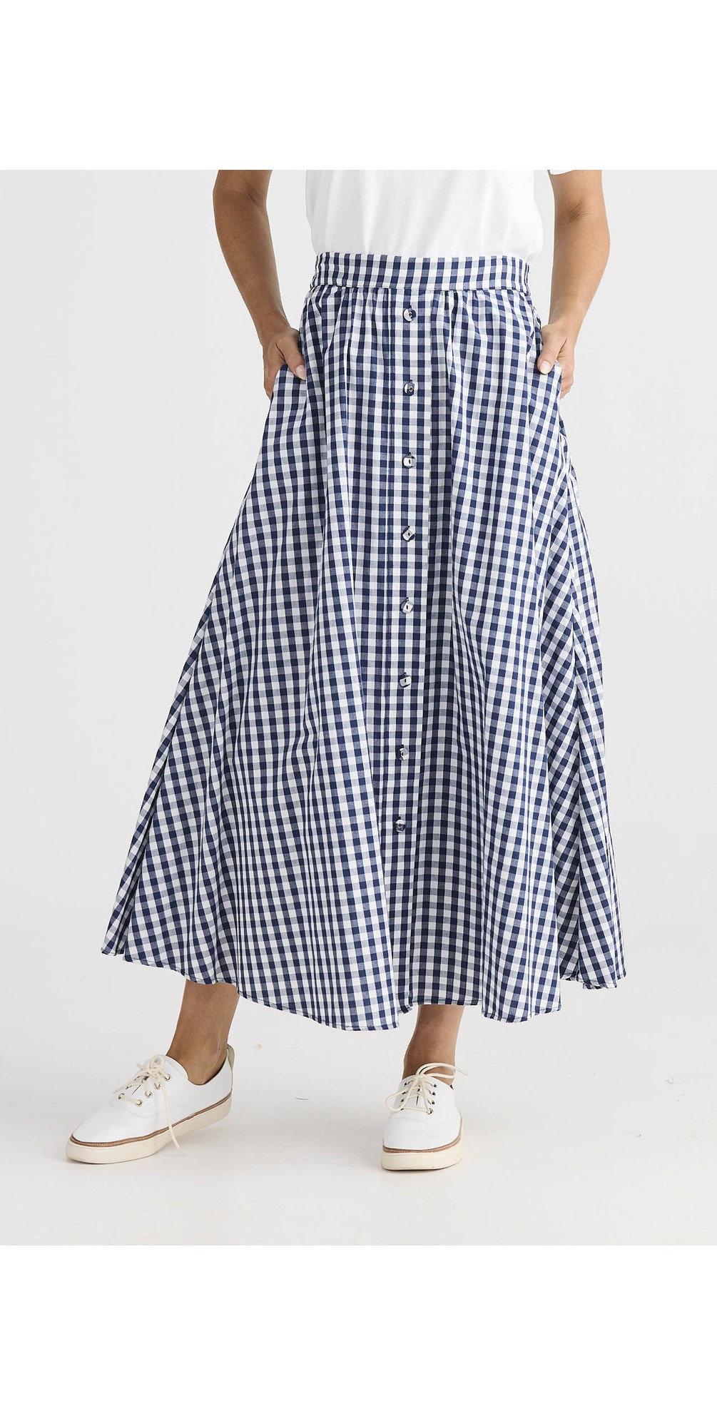 Brave + True Lucy Navy Gingham Maxi Skirt