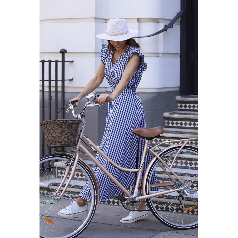 Brave + True Paz Navy Gingham Top – Lightweight Summer Blouse with Ruffle Sleeves