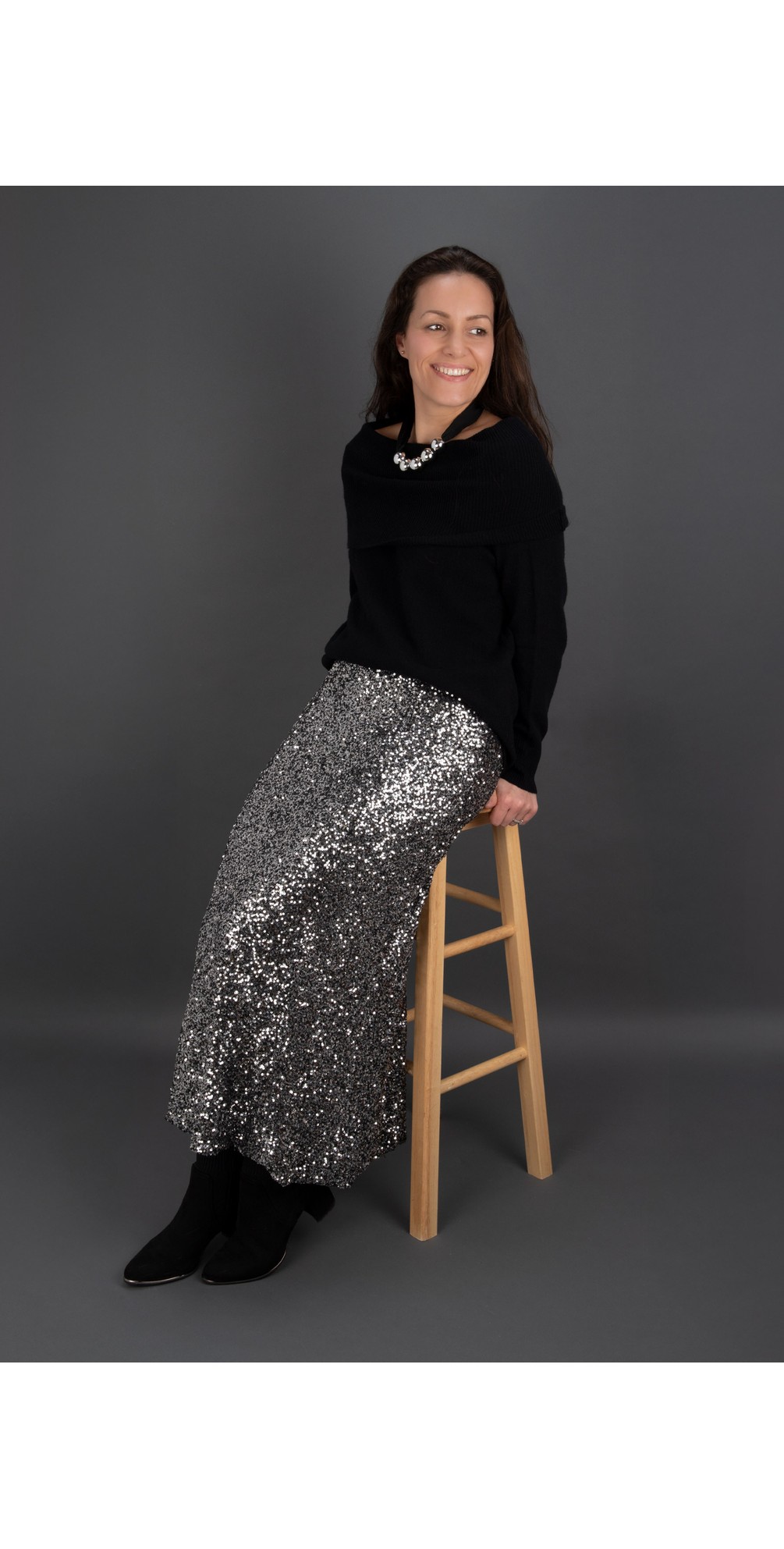 The Brave And True Ritz Sequin Skirt is a stunning maxi skirt designed to turn heads at any party or evening event. Covered in shimmering sequins, this long, fitted skirt adds glam to your outfit without feeling over the top. Its sleek silhouette flatters your figure while allowing you to move comfortably through the night. Style with the matching top for the perfect look.