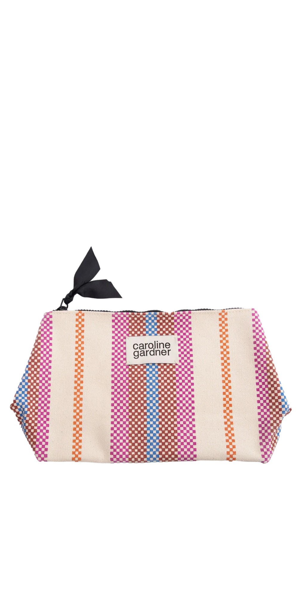Caroline Gardner Checkerboard Stripe Coated Cotton Beauty Bag