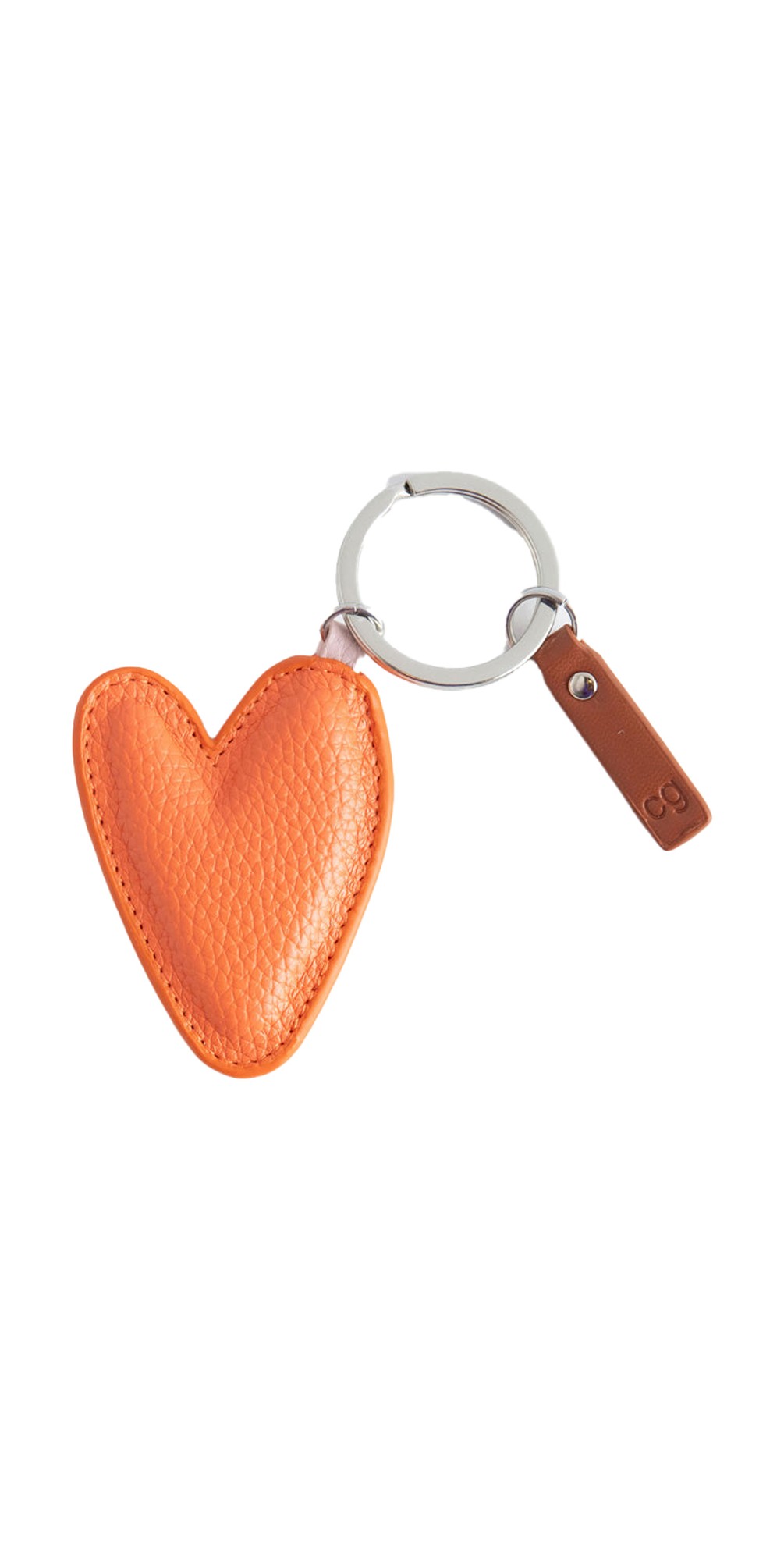 Add a playful pop of colour to your everyday accessories with the Caroline Gardner Coral Orange Heart Keyring — a charming heart-shaped keyring and bag charm crafted from padded leather-look PU with silver hardware and a signature tan branded tab. Perfect for keeping keys together or attaching to your favourite tote or backpack, this coral orange heart adds personality and style to daily essentials. A fun, versatile accessory and lovely gift idea for friends and loved ones.