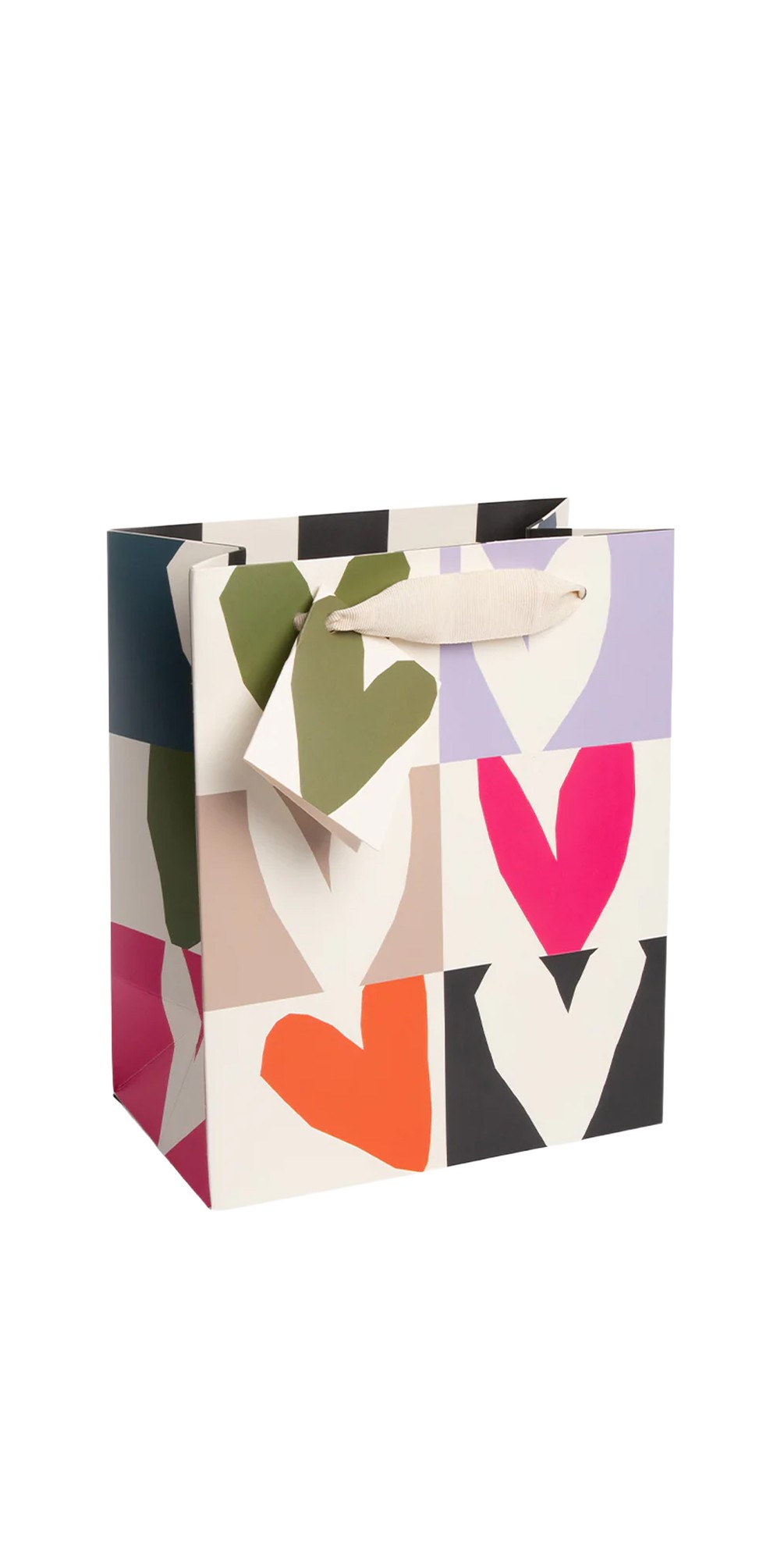Caroline Gardner Medium Gift Bag – Monochrome Checkmate Heart Print