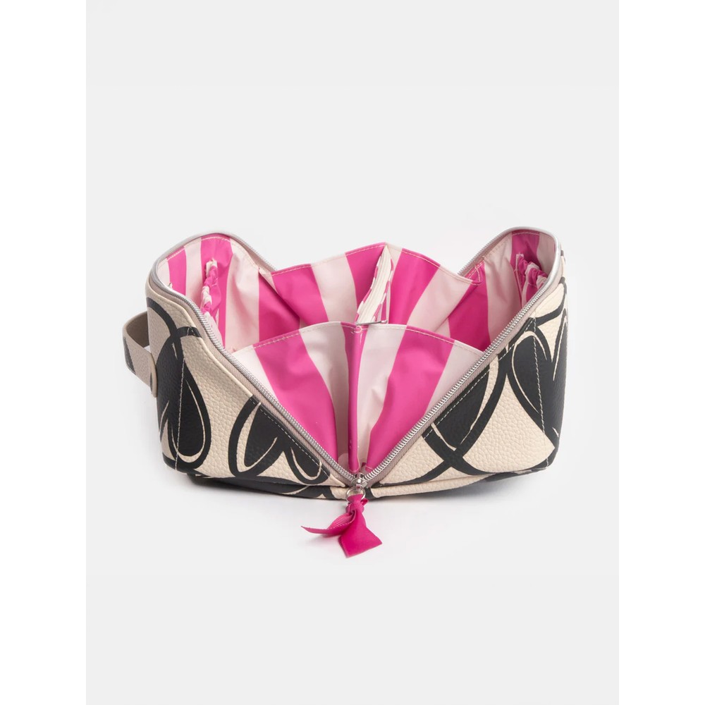 Part of the popular Caroline Gardner Looped Hearts collection, this elegant monochrome cosmetic bag is ideal for holidays, weekend breaks, gym sessions, or everyday bathroom organisation.