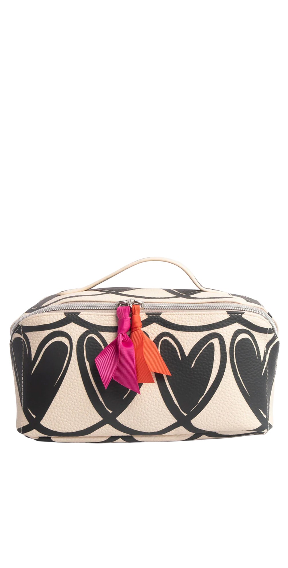 Caroline Gardner Mono Looped Hearts Flat Lay Wash Bag
