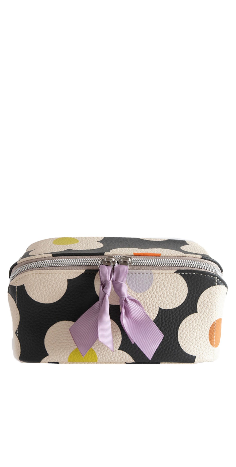 A fresh addition to your beauty kit, the Caroline Gardner Multi Flower Charcoal Flat Lay Cosmetic Bag brings pretty floral style to everyday organisation. Crafted in a leather-look finish with a charcoal multi-flower print and a diagonal zip that opens flat, this cosmetics case offers effortless access and practical storage for makeup and toiletry essentials wherever you go. Inside, two compartments and a central zip pocket keep everything tidy, while the wipe-clean stripe lining makes it ideal for travel, work or home.