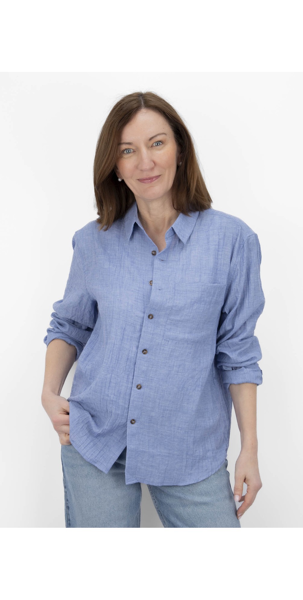 Crafted from lightweight cotton for breathability and comfort, it features a relaxed silhouette that drapes loosely over the body for an easy, flattering fit. The classic collar and button-through front add a timeless touch, while the clean, minimal design makes it perfect for layering or wearing on its own. Lightweight cotton shirts like this are wardrobe essentials, offering comfort, versatility, and effortless style.