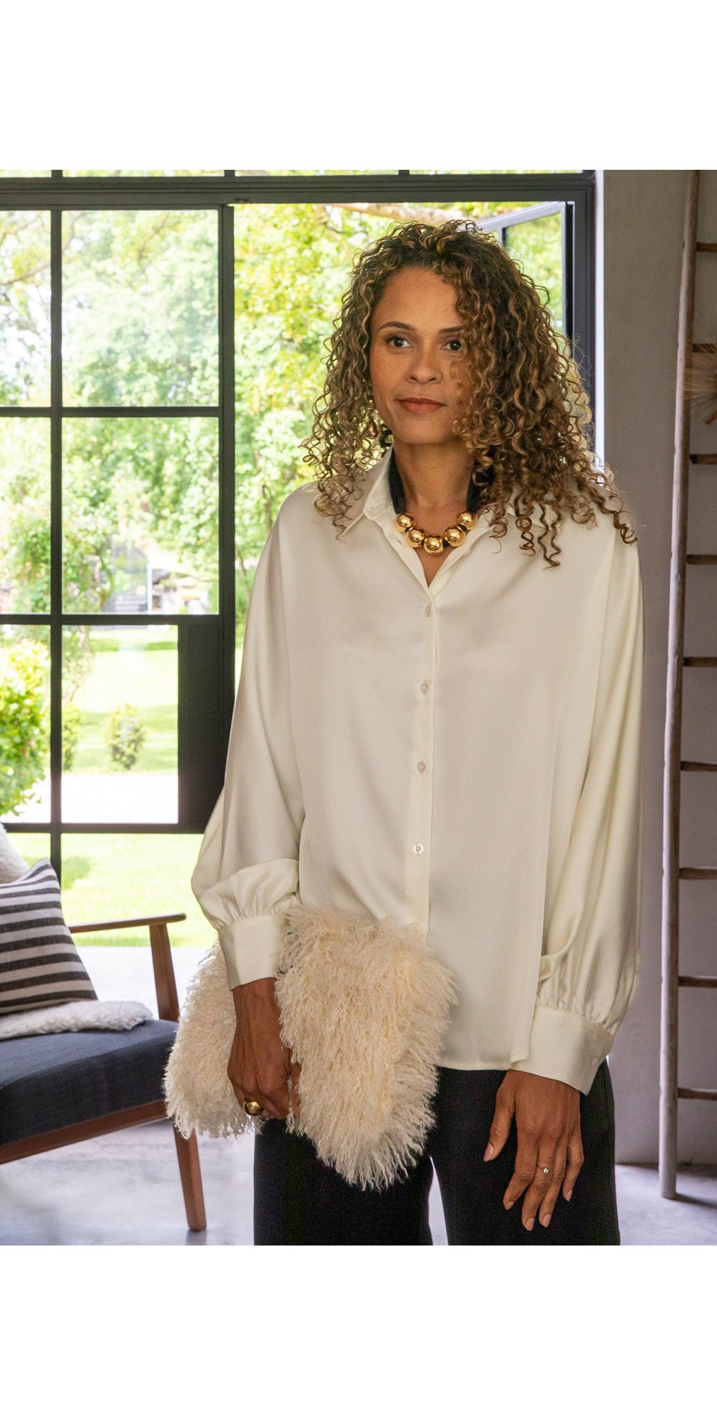 The Flo Satin Shirt from Chalk is a soft satin-feel shirt in a classic shirt shape. The shirt features large buttoned cuffs, a classic collar and front-button placket. Style with velvet trousers and heels this party season!